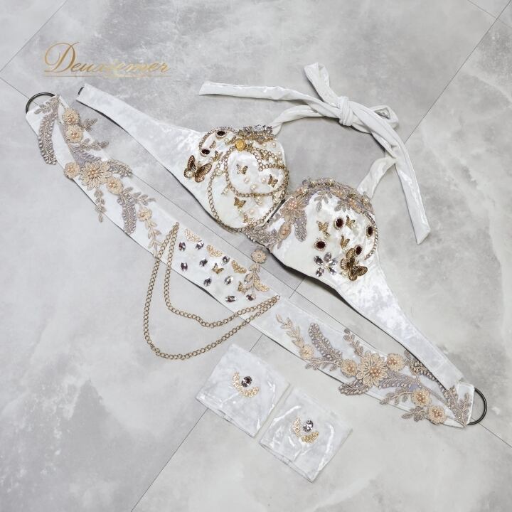 #ベリーダンス #オリエンタル衣装 #ダンス衣装 #コスチューム #ベリーダンス衣装 #ホワイト #シルバー #ゴールド #花モチーフ #蝶モチーフ #衣装撮影 #トルソー #女性用トルソー #ダンスパフォーマンス #ファッション #ウェア #アート #エクササイズ #エンターテイメント #ENUTSU