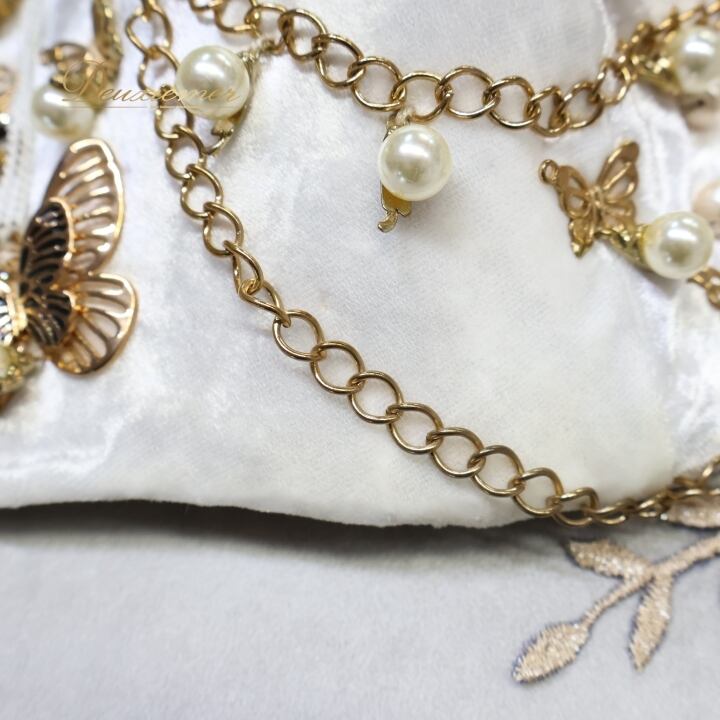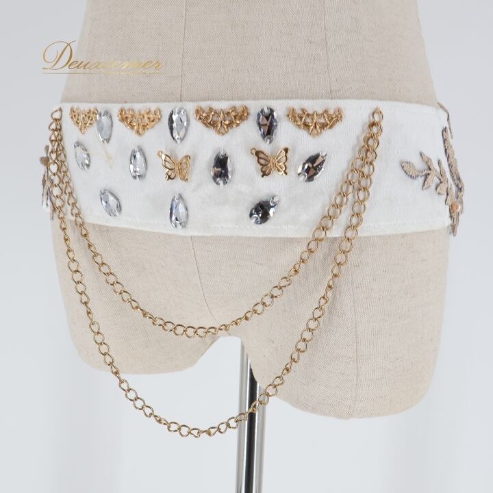 ベリーダンス オリエンタル 衣装 トップス ベルト セット ホワイト系 蝶 花 アーム アーム飾り 腕飾り ラインストーン チェーン 白 金 かわいい 爽やか 明るい ダンス衣装 ステージ イベント キラキラ 華やか シルバー系 ゴールド系