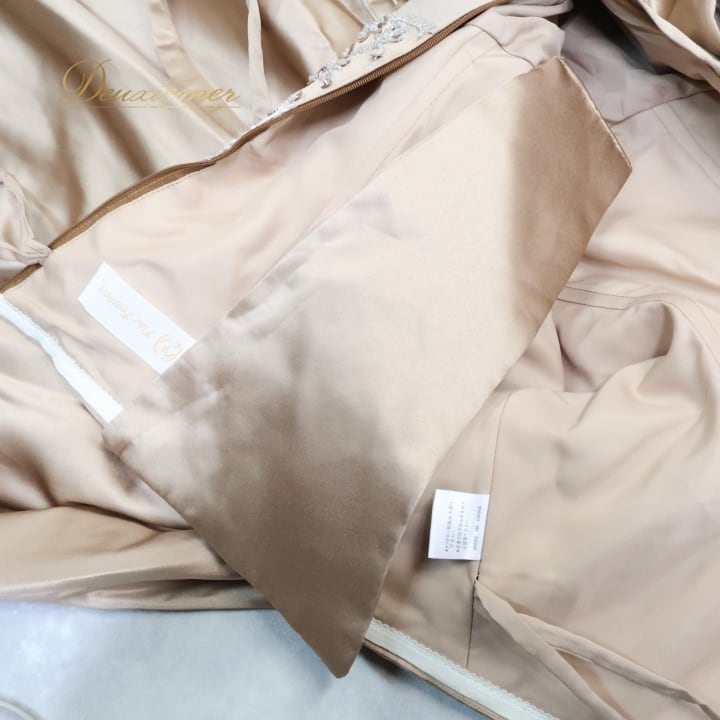 パーティドレス fine feathers ファインフェザーズ ワンピース ドレス 演奏会 発表会 カラードレス 結婚式 披露宴 前撮り 撮影 ブラウン系 ベージュ系 ゴールド系 高級感 光沢感 おしゃれ ドレスアップ フォーマルスタイル シンプルエレガンス レディース 結婚式二次会 上品 撮影会 華やか 結婚式用 フォーマルドレス
