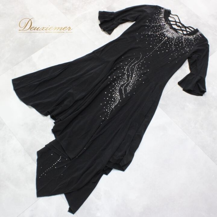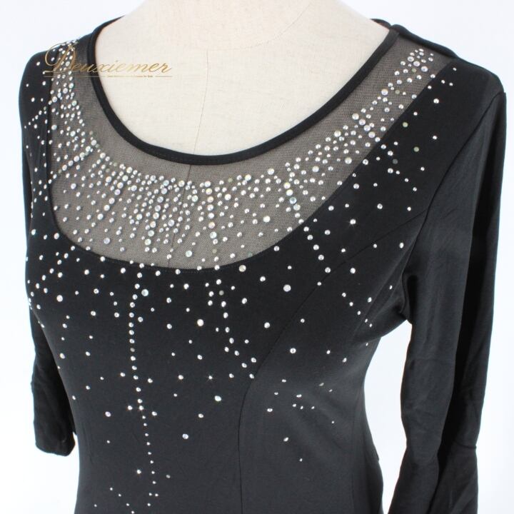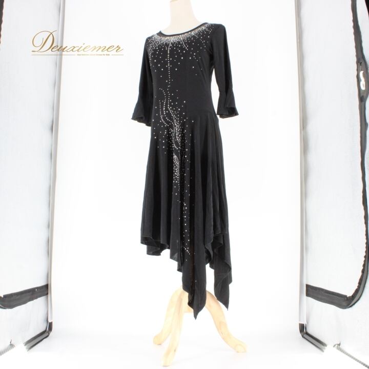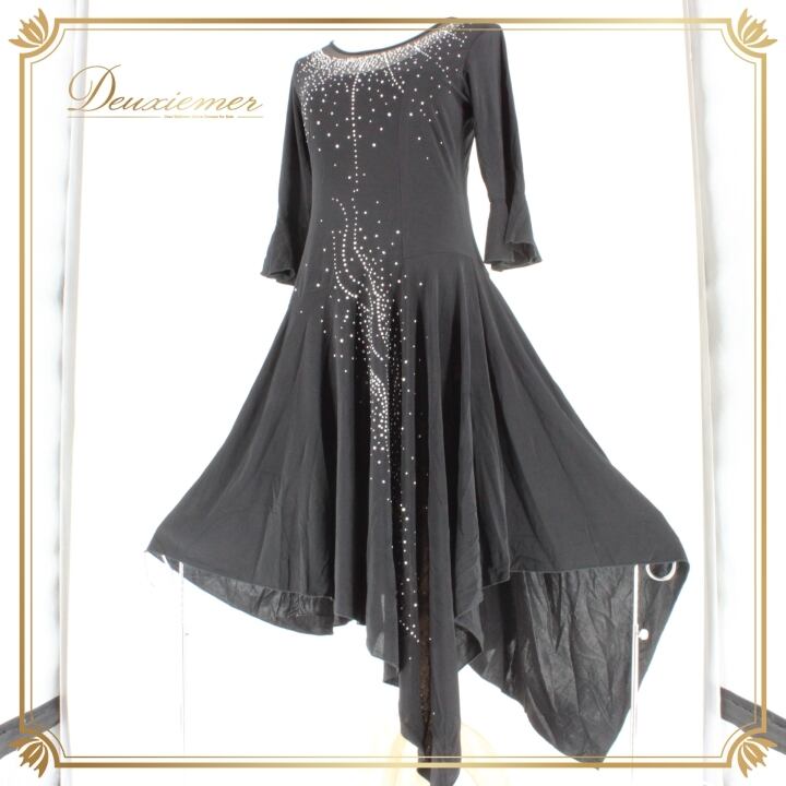社交ダンス 衣装 スタンダード ラテン ドレス ワンピース レッスンウェア パーティドレス ラインストーン ブラック系 prima boutique プリマブティック 黒 ロングドレス フォーマル 派手 シンプル 大人 おしゃれ パーティー用 着やすい プレゼント 伸縮性 上品 クラシック 衣装用ドレス ダンス用衣装 着心地 披露宴 体型カバー デイリードレス