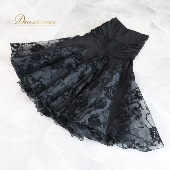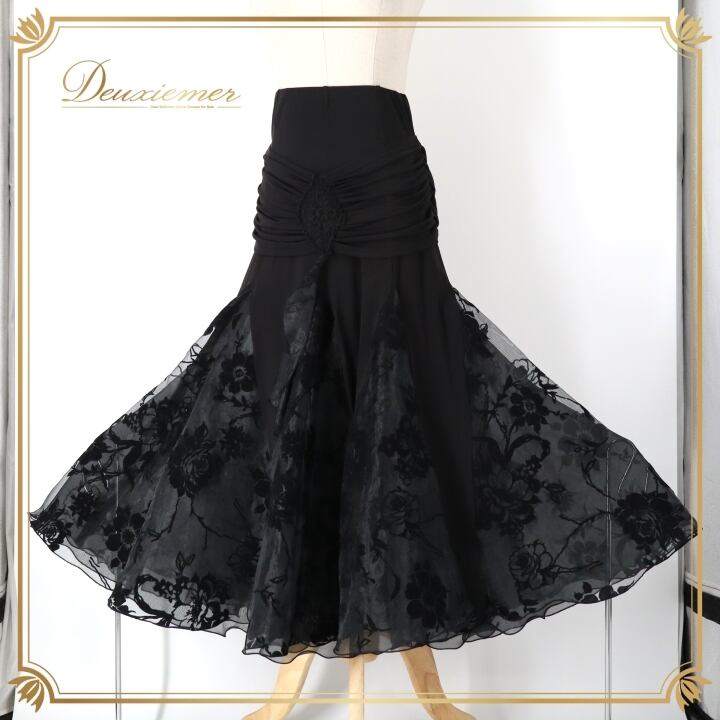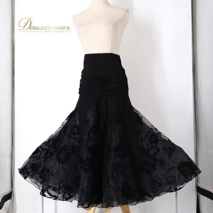 社交ダンス 衣装 スカート ブラック系 タカダンス TAKA DANCE 黒 シンプル 透け感 花柄 バラ柄 植物柄 チュール ベロア ふんわり フレア 上品 大人っぽい おしゃれ 練習着 レッスン レッスン着 練習 ブラック おしゃれスカート フレアスカート ダンス衣装 練習用 チュールスカート 大人女性 花柄スカート 透けスカート ボリューム感 ダンス用スカート エレガント ブラックファッション ふんわりスカート