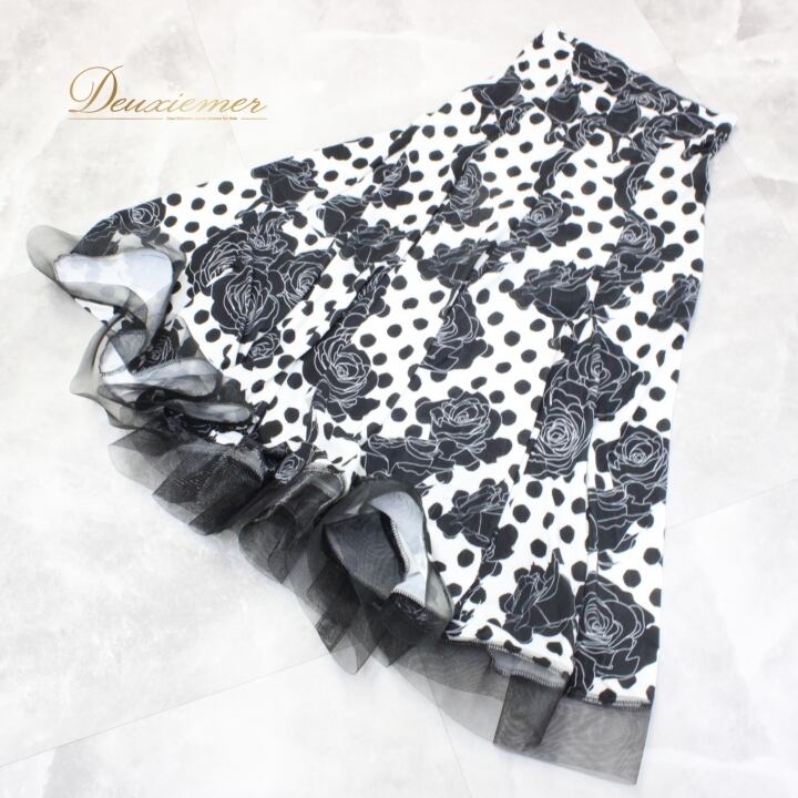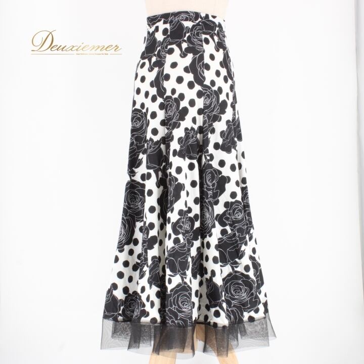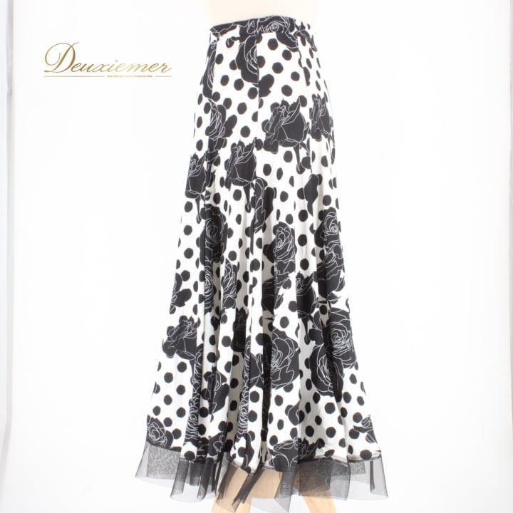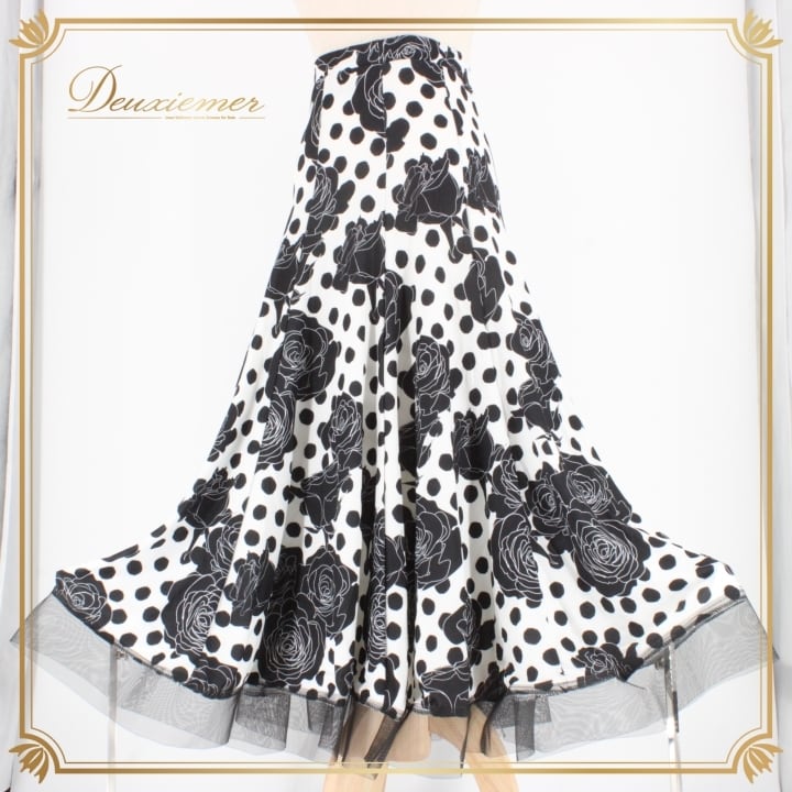#社交ダンス #ダンス衣装 #スカート #レトロファッション #ドット柄 #花模様 #ブラックホワイト #ホースヘア #ウエストゴム #伸縮性 #ポリエステル #ポリウレタン #ダンスパフォーマンス #トルソー #ファッションコーデ #スタイリング #可愛いスカート #ダンススタイル #動きやすい #Leirena #ENUTSU