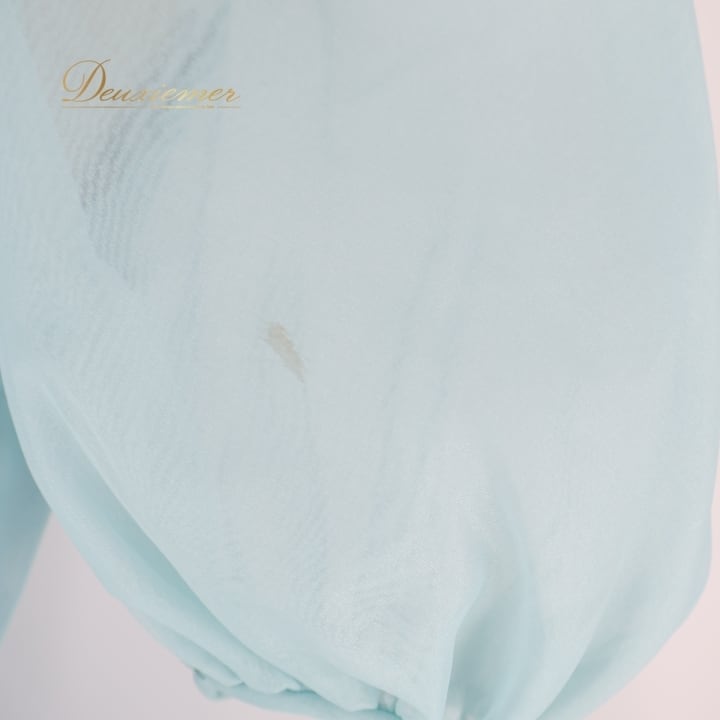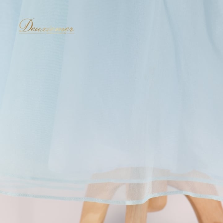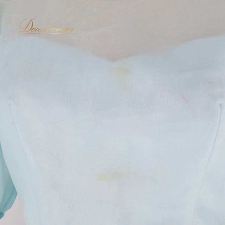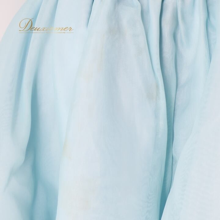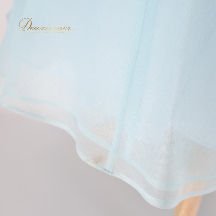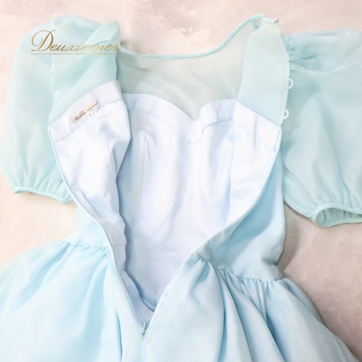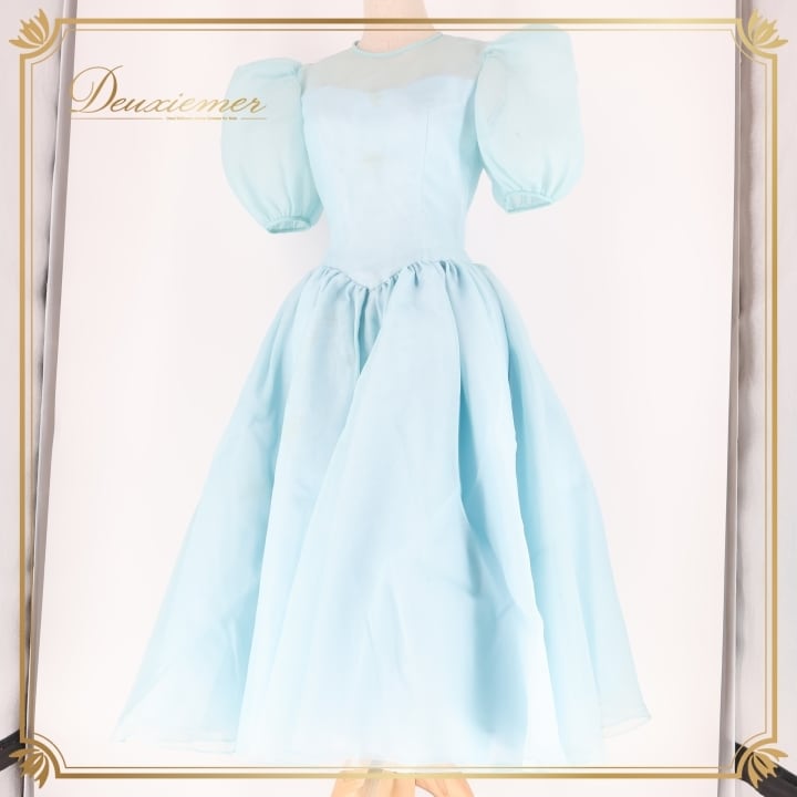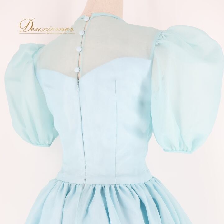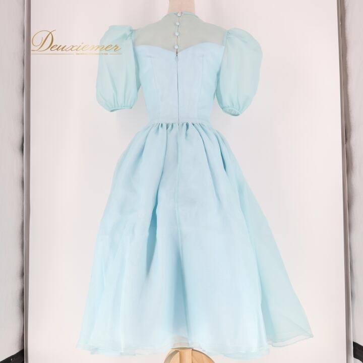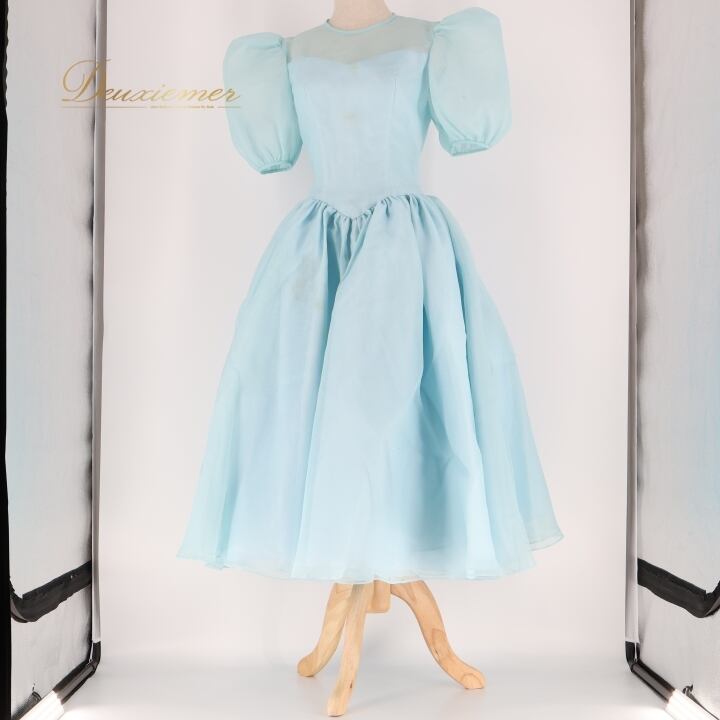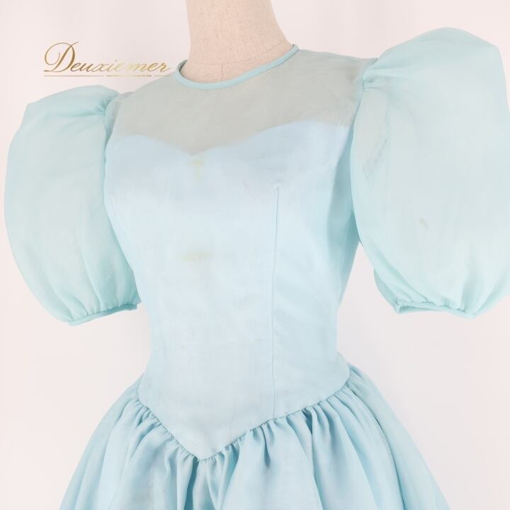 #パーティドレス #ワンピース #ドレス #水色 #レトロデザイン #ファッション #おしゃれ #レディースファッション #ドレスコーデ #カジュアルスタイル #結婚式 #二次会 #パーティー #大きな袖 #トルソー #伸縮性無し #ウエスト #総丈 #Simonne #ENUTSU