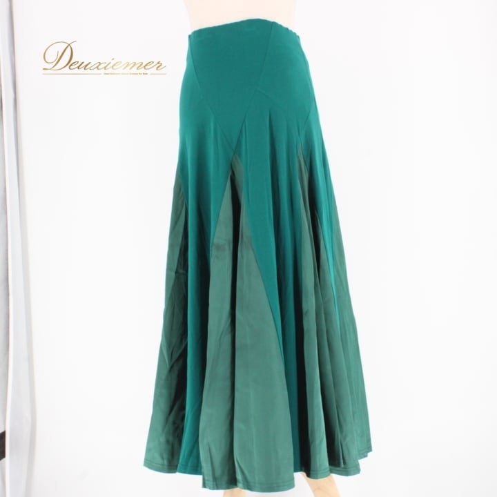 #社交ダンス #ダンス衣装 #スカート #ダンスファッション #パフォーマンス衣装 #グリーン #シンプルデザイン #ウエストゴム #伸縮性 #ポリエステル #ポリウレタン #舞台衣装 #女性用トルソー #華やぎ #落ち着き #ダンス用品 #ファッション #スポーツファッション #フィットネス #ENUTSU