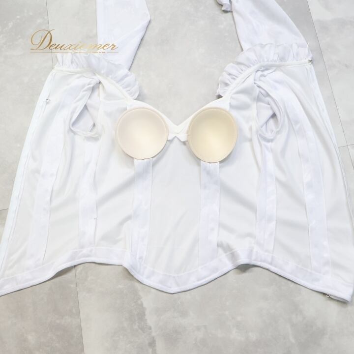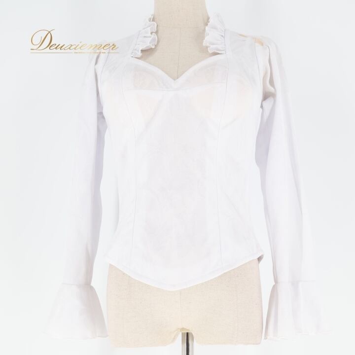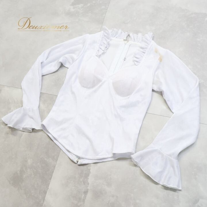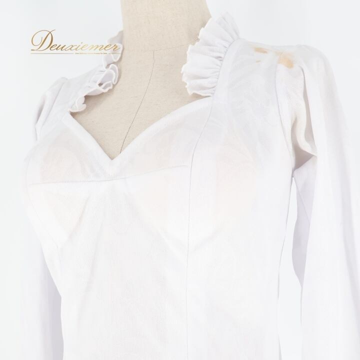 #フラメンコ #衣装 #トップス #ブラウス #ダンス衣装 #フリル #ホワイト #伸縮性 #女性用 #胸パッド #背面ファスナー #コーディネート #トルソー #サイズ3 #ファッション #かわいい #ストリートファッション #舞台衣装 #パフォーマンス #ENUTSU