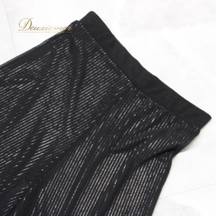 #社交ダンス #ダンス衣装 #パンツスタイル #ストライプ柄 #ブラックシルバー #ウエストゴム #伸縮性 #おしゃれ #ダンスファッション #トルソー #女性用トルソー #スタイリッシュ #ポリエステル #ポリウレタン #ダンスウェア #パフォーマンス衣装 #エレガント #快適 #ファッション #ENUTSU