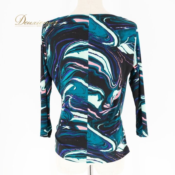 社交ダンス 衣装 トップス ブラウス グリーン系 ブラック系 Chacott ROYAL DANCE チャコットロイヤルダンス 日本製 伸縮 ストレッチ 練習 レッスン 柄 模様 緑 黒 青 ドレープ パーティー 総柄 かわいい 鮮やか ピンク系 ブルー系