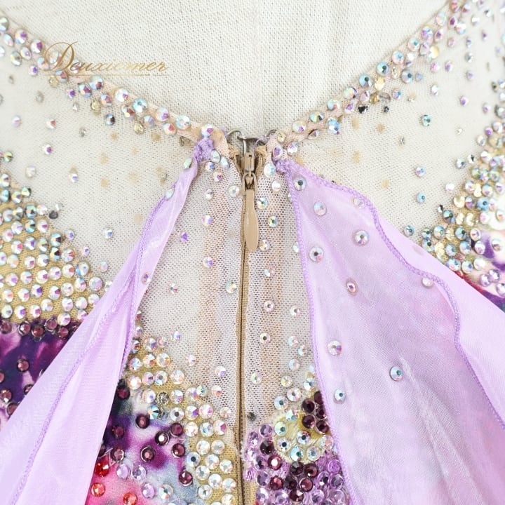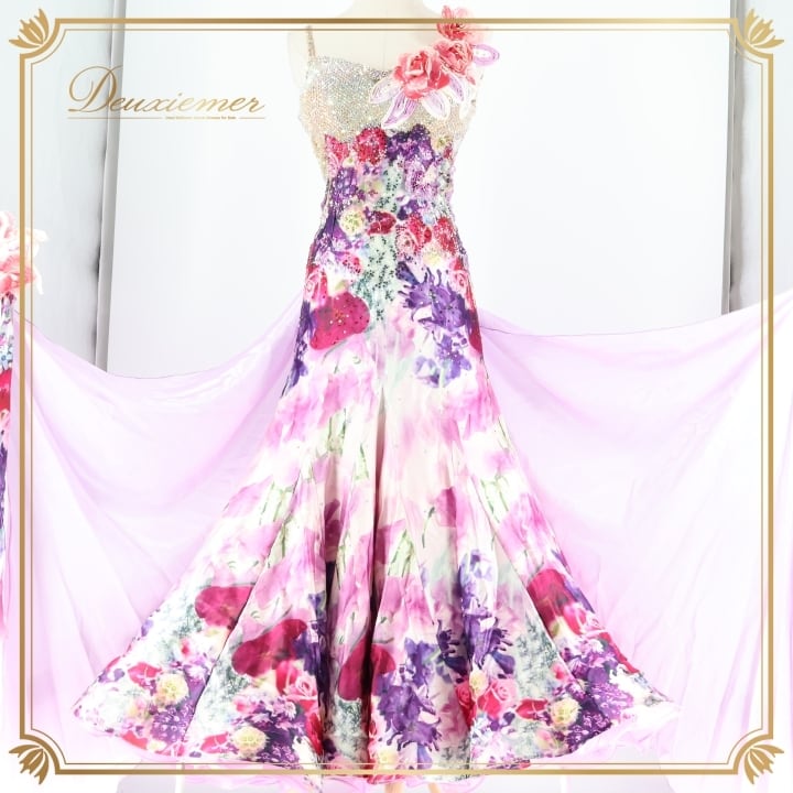 社交ダンス 衣装 エダスー edda hsu スタンダードドレス ピンクワンピース ドレス ピンク系 パープル系 ホワイト系 紫 ピンク 花柄 レース フロート デモ 競技 ダンス パーティ ゴージャス 華やか フォーマル パーティー 大人 上品 おしゃれ レディース 輝き 競技用 コスチューム