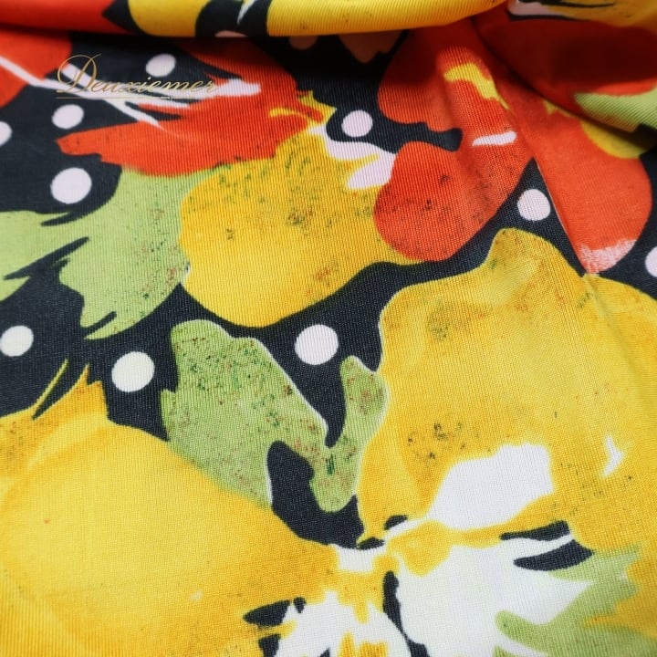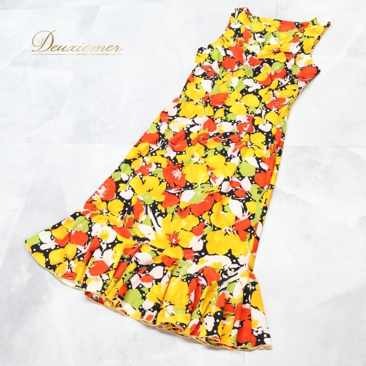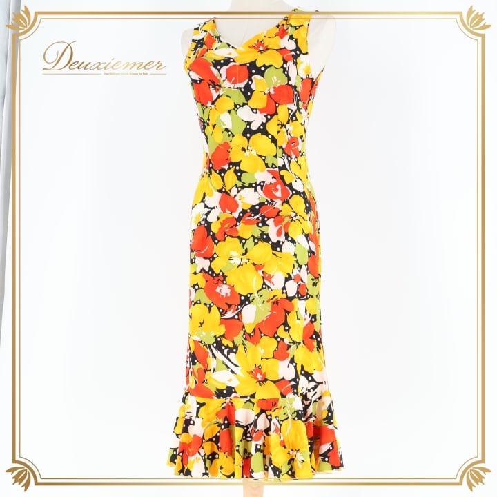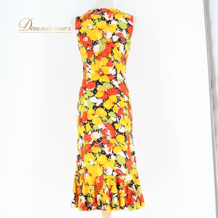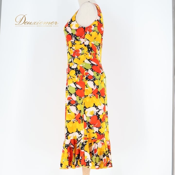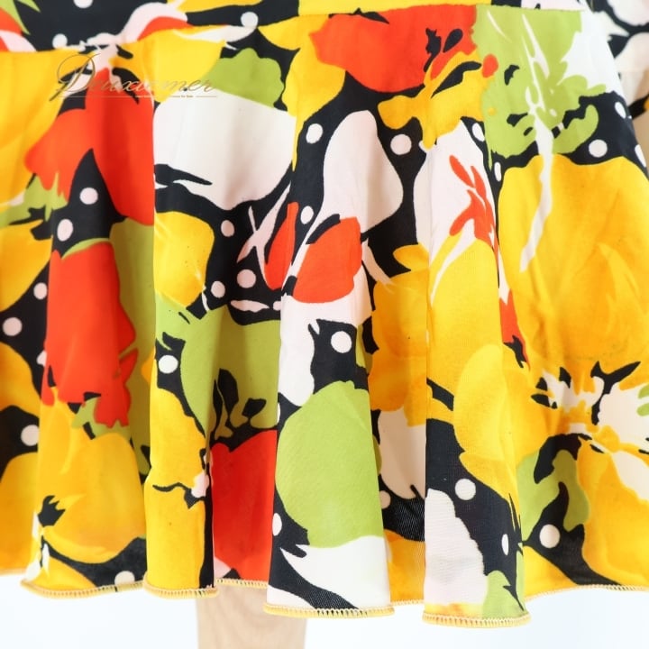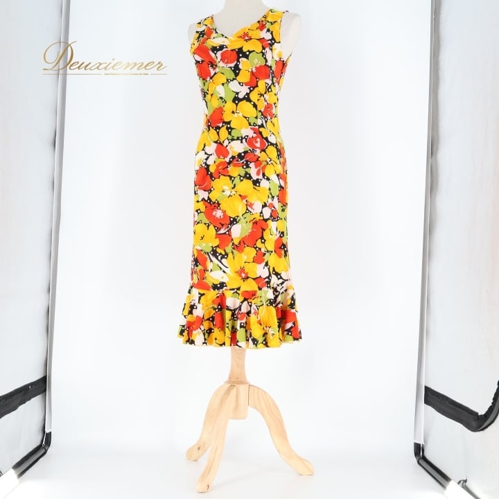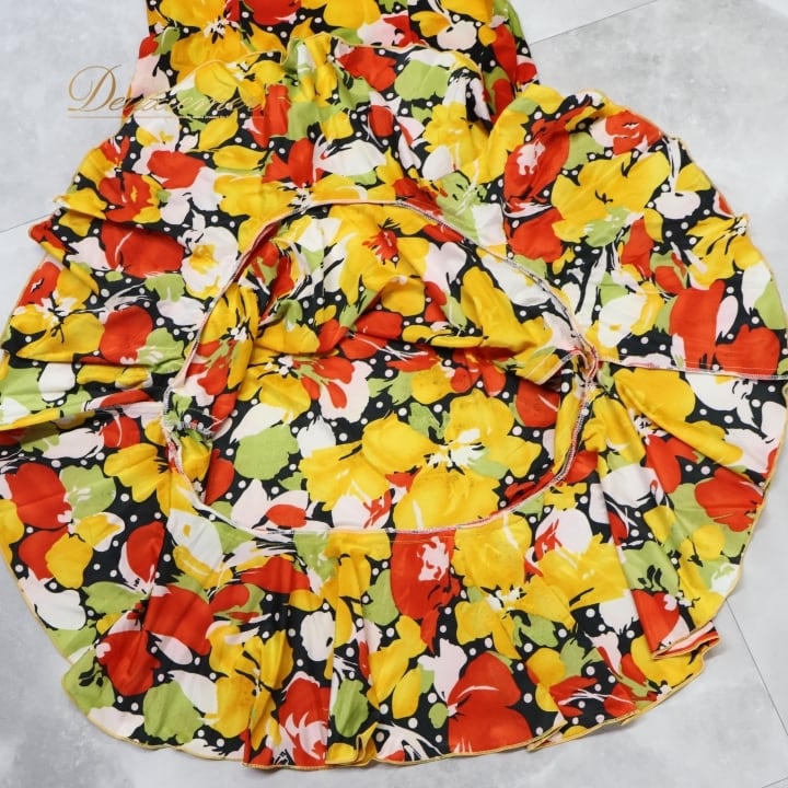 フラメンコ 衣装 ワンピース ドレス イエロー系 オレンジ系 レッド系 黄色 オレンジ 黒 ブラック 花柄 伸縮 ストレッチ 軽い パーティ 発表会 コスチューム おしゃれ レディース 女性用 フラワープリント