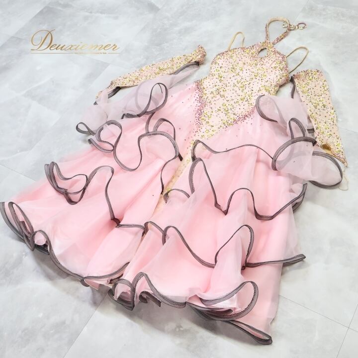 #社交ダンス #衣装 #ワンピース #ドレス #ダンスファッション #ピンクドレス #フリルデザイン #ダンス衣装 #ダンススタイル #レオタード #女性用衣装 #パーティードレス #プロムドレス #ドレスコード #イベント衣装 #ダンスコスチューム #ストレッチ素材 #胸パッド付き #ファッション #ENUTSU