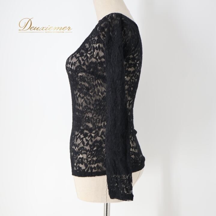 社交ダンス 衣装 トップス ブラウス ブラック系 チャコット Chacott 黒 日本製 レース 伸縮 ストレッチ 練習 レッスン 上品 かわいい パーティー ダンス衣装 イベント ステージ 長袖 重ね着