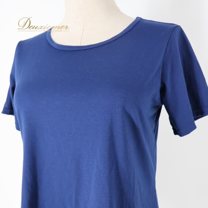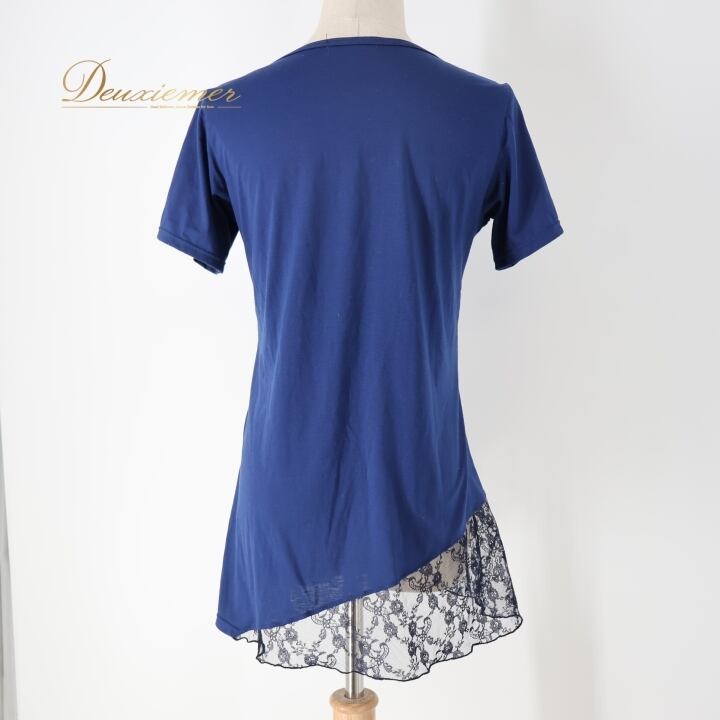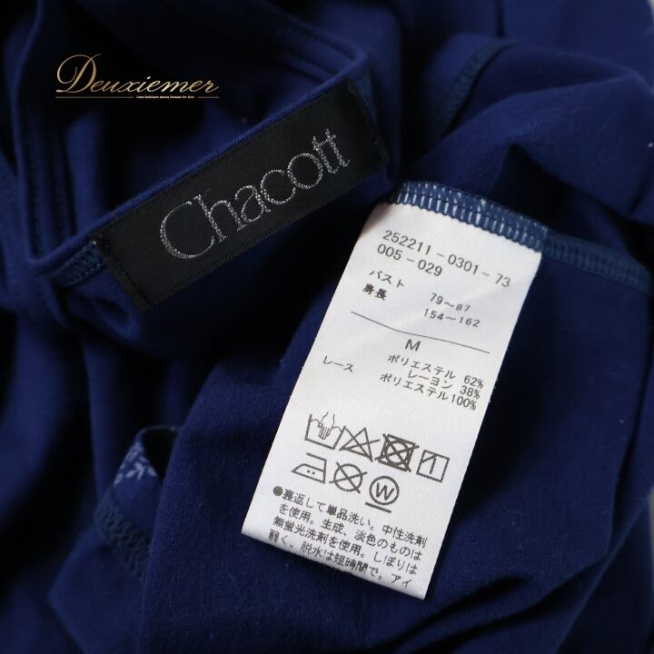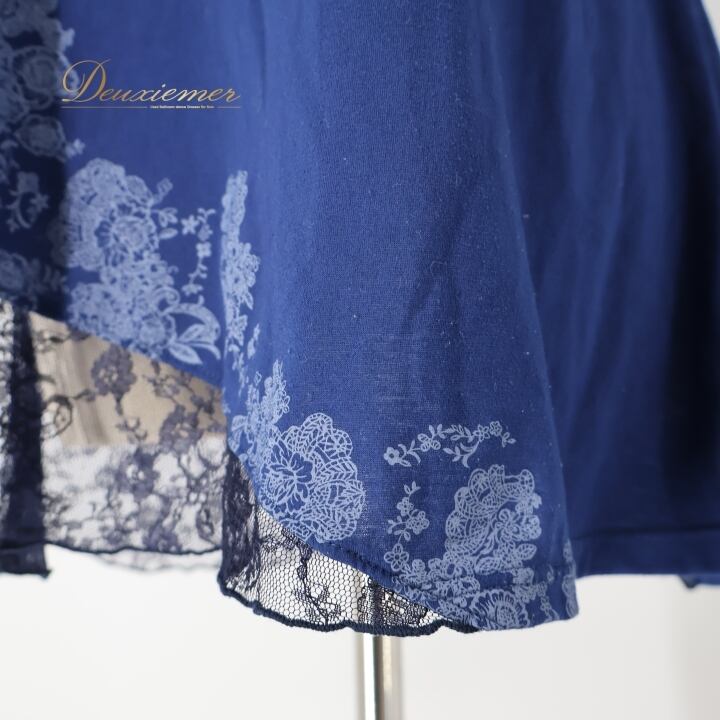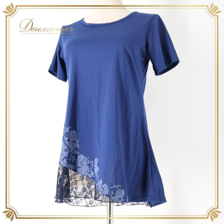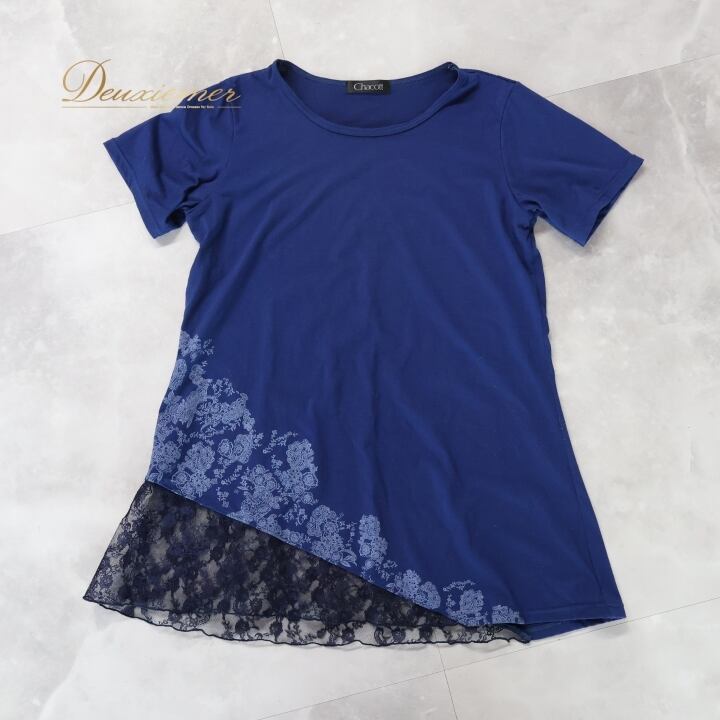 社交ダンス 衣装 トップス ブラウス ブルー系 チャコット Chacott 日本製 レース 青 紺 バレエ Tシャツ 練習 レッスン 伸縮 ストレッチ 半袖 長め チュニック かわいい 花柄 花 フラワー ネイビー系