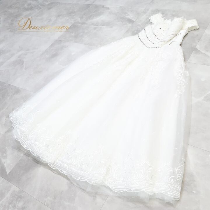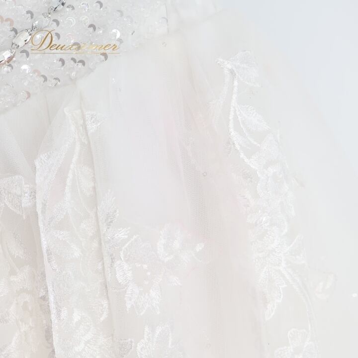 パーティドレス ワンピース ドレス ホワイト系 白 シルバー フリル レース ビーズ 発表会 演奏会 パーティ 演奏会ドレス 結婚式ドレス フォーマルドレス 撮影用ドレス エレガント ビーズ装飾