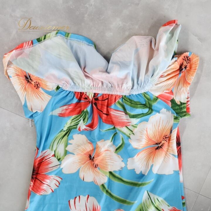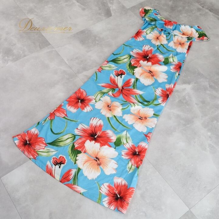 #フラダンス #フラダンス衣装 #ワンピース #ドレス #ブルー #ハイビスカス #おしゃれ #フリル #ドレスアップ #パーティー #夏のコーデ #ビーチファッション #アロハ #トロピカル #ファッション #カジュアル #女性用 #ファッショントレンド #衣装 #ENUTSU