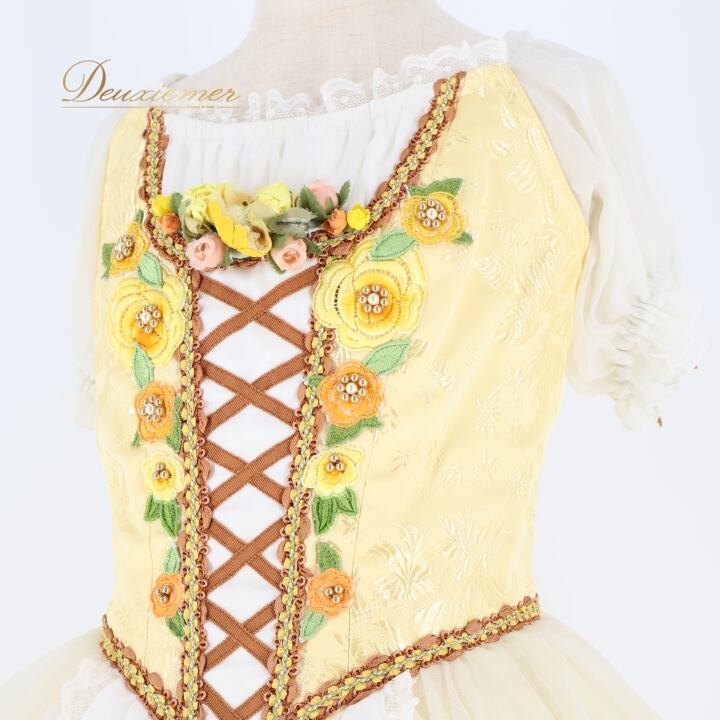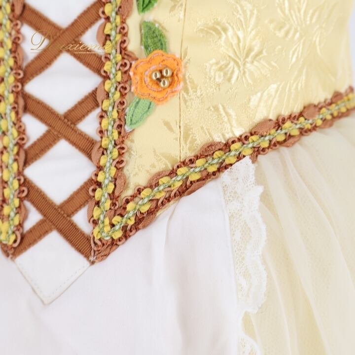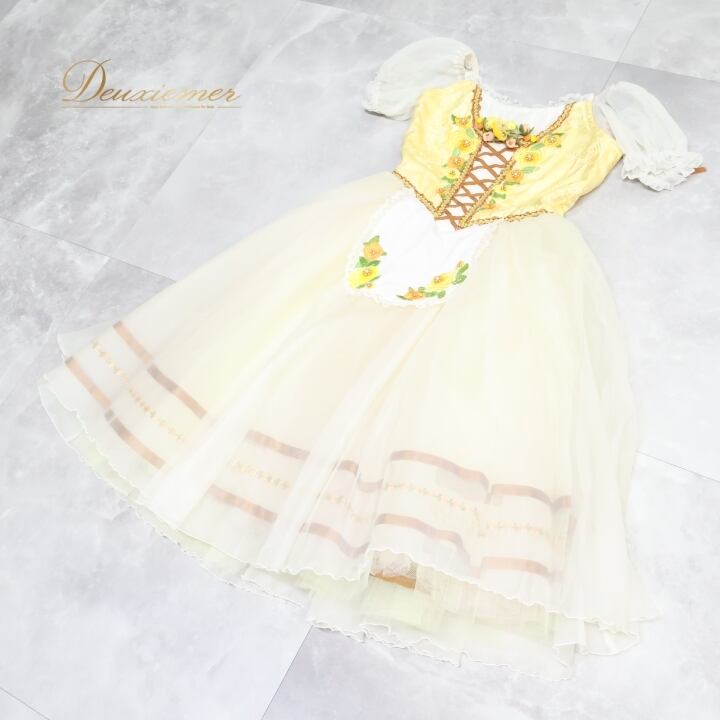 バレエ 衣装 チャコット Chacott 日本製 ロマンティックチュチュ ワンピース ドレス イエロー系 ホワイト系 黄色 アイボリー ジュニア 子供 花柄 レース 発表会 コンクール ダンス おしゃれ 可愛い ガーリー かわいい 衣装用 ジュニアサイズ 舞台衣装 発表会衣装