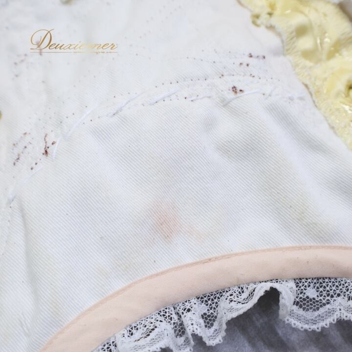 平置き実測:上半身部約33cm(切り返し~肩上部まで)、スカート部約63cm、身幅約33cm、ウエスト約27cm