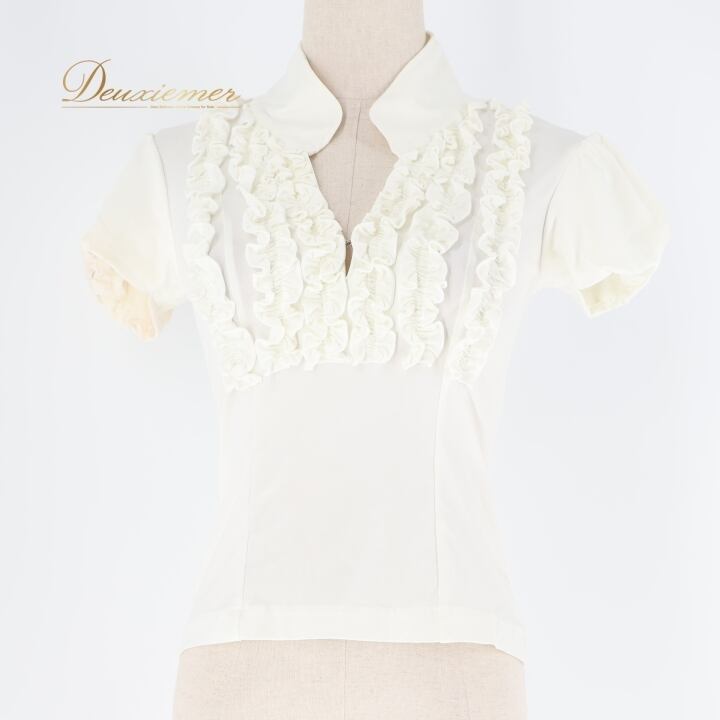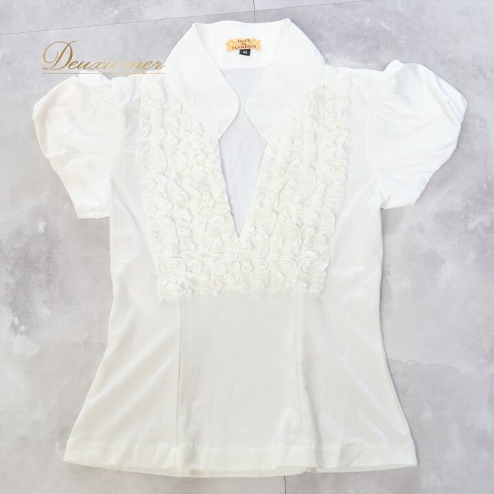 フラメンコ 衣装 トップス ブラウス ホワイト系 ドセデルフラメンコ DOCE del FLAMENCO 白 フリル ダンス パーティ 発表会 可愛い 無地 半袖 フラメンコ衣装 ブラウス レディース トップス フリルデザイン おしゃれ 発表会用 半袖 かわいい Mサイズ コスチューム ダンス衣装