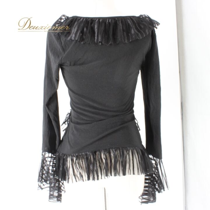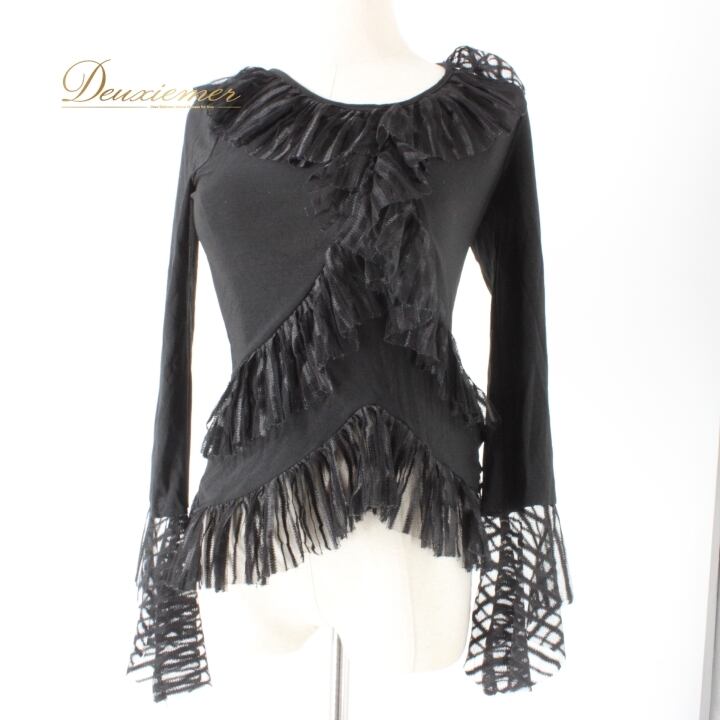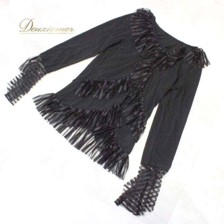 社交ダンス 衣装 スタンダード トップス レッスンウェア レディース 長袖 黒 ICHIOKU イチオク ブラック系 レース 練習着 透け感 フリル 伸縮性 おしゃれ ダンスウェア ユニーク デザイン シンプル ブラック トップス
