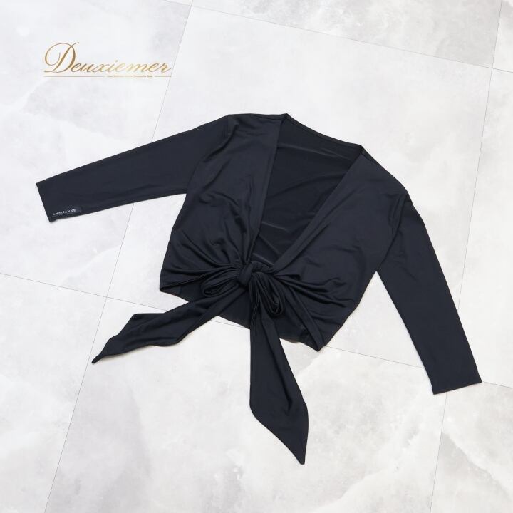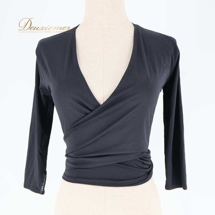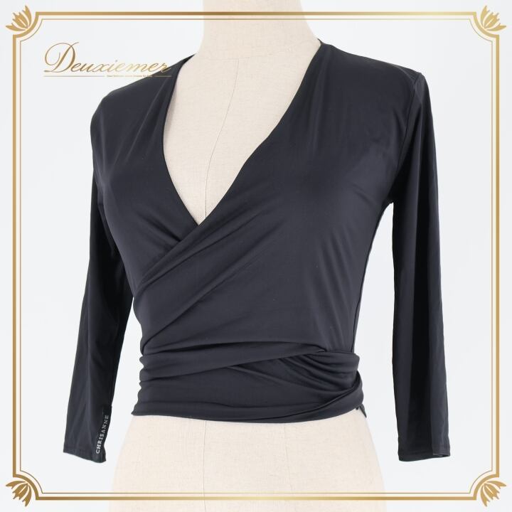 社交ダンス 衣装 トップス ブラウス ブラック系 クリスアン CHRISANNE 黒 無地 シンプル 練習 レッスン 伸縮 ストレッチ リボン 羽織り 上品 ダンス衣装 イベント ステージ かわいい 柔らかい生地 オールブラック