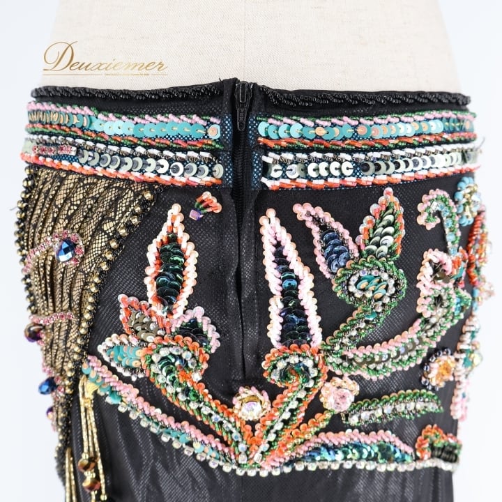 ベリーダンス オリエンタル 衣装 上下セット ブラック系 トップス スカート アーム アーム飾り 腕飾り 黒 青 金 赤 緑 ラインストーン ビーズ スパンコール 豪華 装飾 かわいい ダンス衣装 イベント ステージ ブルー系 ゴールド系 ピンク系 グリーン系