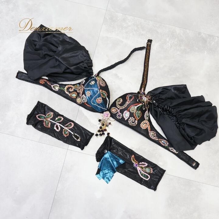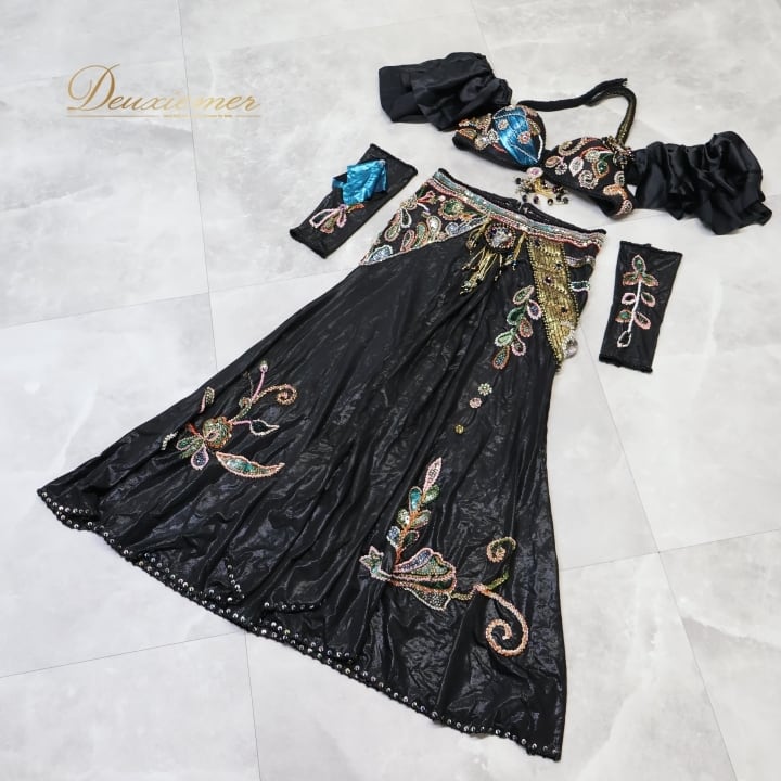 #ベリーダンス #ダンス衣装 #ダンスコスチューム #ブラック #ブルー #カラフル #アーム飾り #スカート #ユニークデザイン #オリエンタル #パフォーマンス #ダンスイベント #エレガント #ファッション #衣装セット #楽しい #クオリティ #ステージ衣装 #ENUTSU