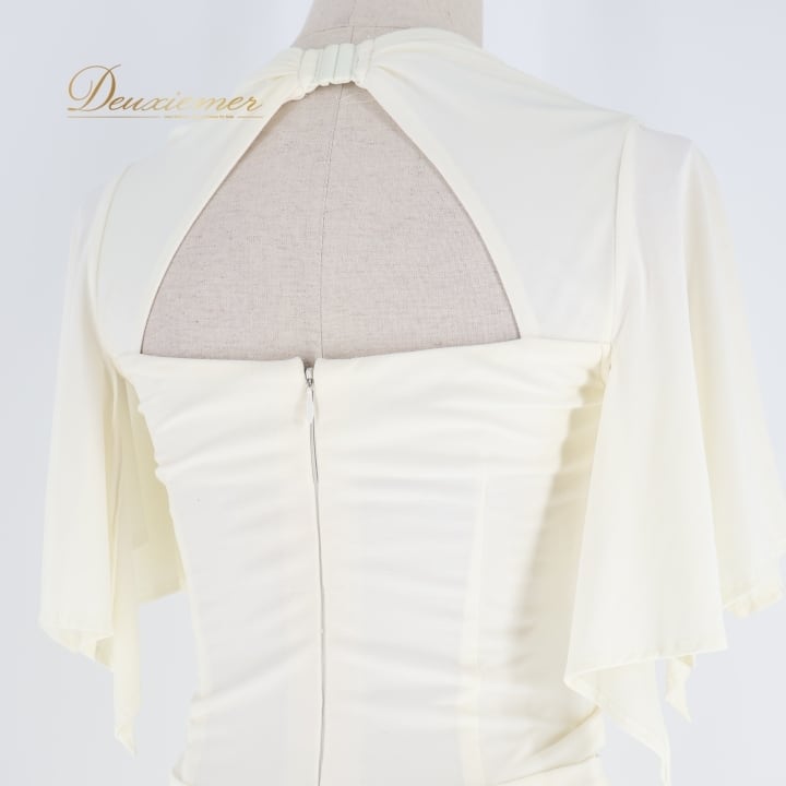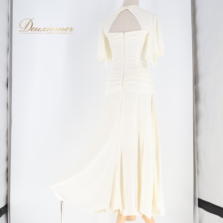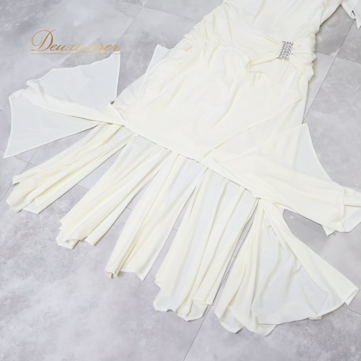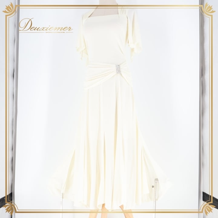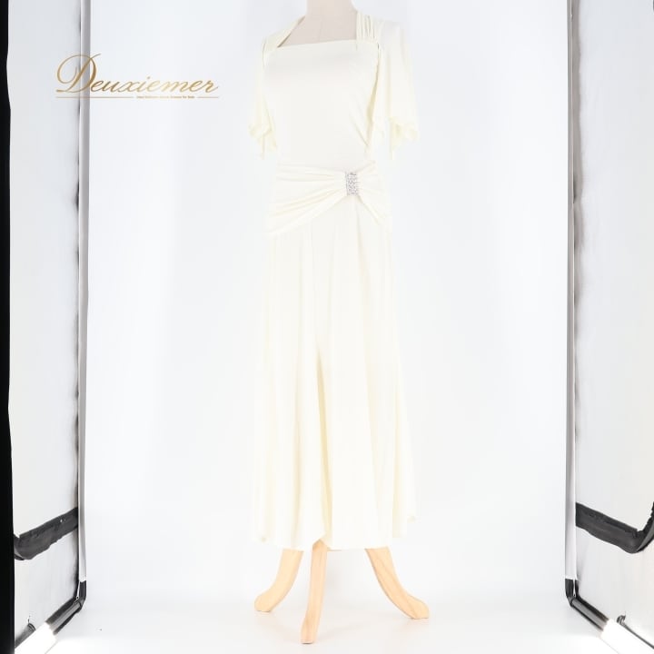 社交ダンス 衣装 ワンピース ドレス ホワイト系 インザムード in the MOOD 日本製 アイボリー 無地 伸縮 ストレッチ パーティ 発表会 ダンス スリット おしゃれ エレガント フェミニン 女性用