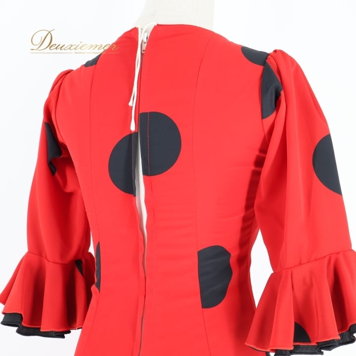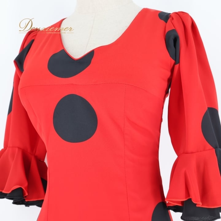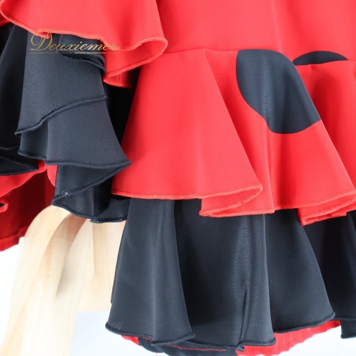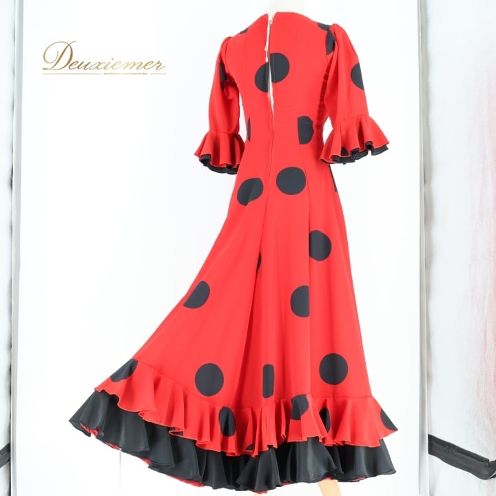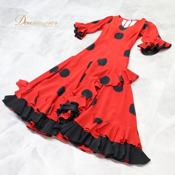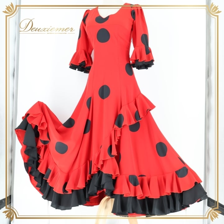 #フラメンコ #衣装 #ドレス #ワンピース #赤黒 #カスタムステージ #バルス #フォルクロール #ダンス衣装 #パフォーマンス #クラシック #コスチューム #女性用 #パーティー #ファッション #トルソー #ボリューム #胸パッド #ダンススタイル #ENUTSU