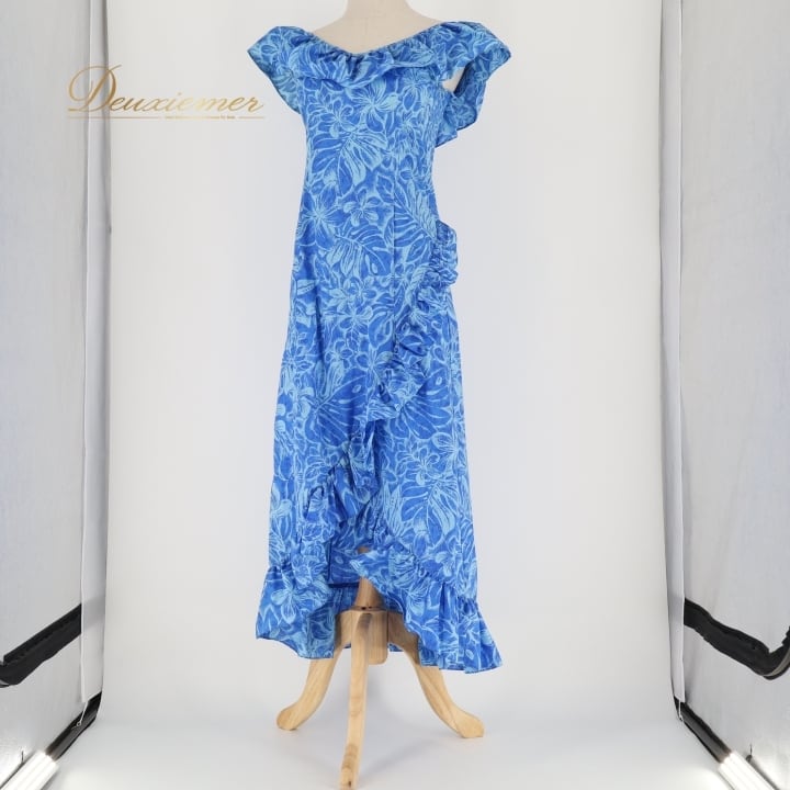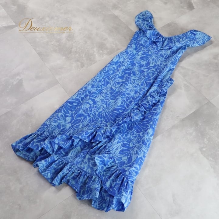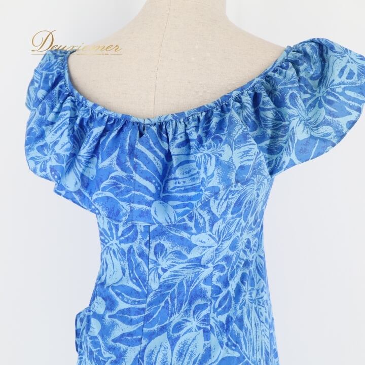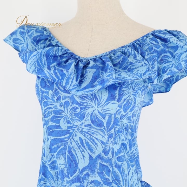 #フラダンス #衣装 #ドレス #ワンピース #マーメイドライン #ブルー #フリル #日本製 #ポリエステル #綿 #ファッション #パーティー #ダンス #夏祭り #可愛い #ステージ衣装 #イベント #女性用 #トルソー #ENUTSU