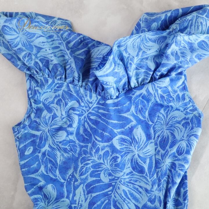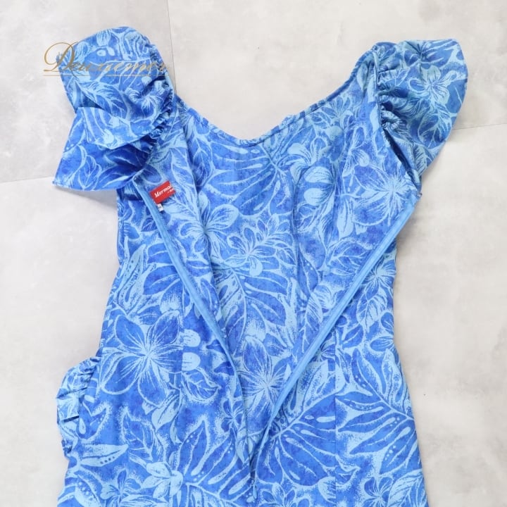 フラダンス 衣装 ワンピース ドレス ブルー系 マーメイドライン エムエムジェイ 日本製 プルメリア柄 モンステラ柄 MermaidLine MMJ ハワイアンプリント アロハ フラ ダンス レッスン 練習 青 水色 フリル ノースリーブ 鮮やか 華やか さわやか かわいい おしゃれ 上品 かわいいドレス フラダンスコスチューム マーメイドドレス おしゃれなワンピース パーティードレス バカンスコーデ 夏ファッション フリル付き 大人可愛い 上品なデザイン 夏用ドレス ハワイアンスタイル
