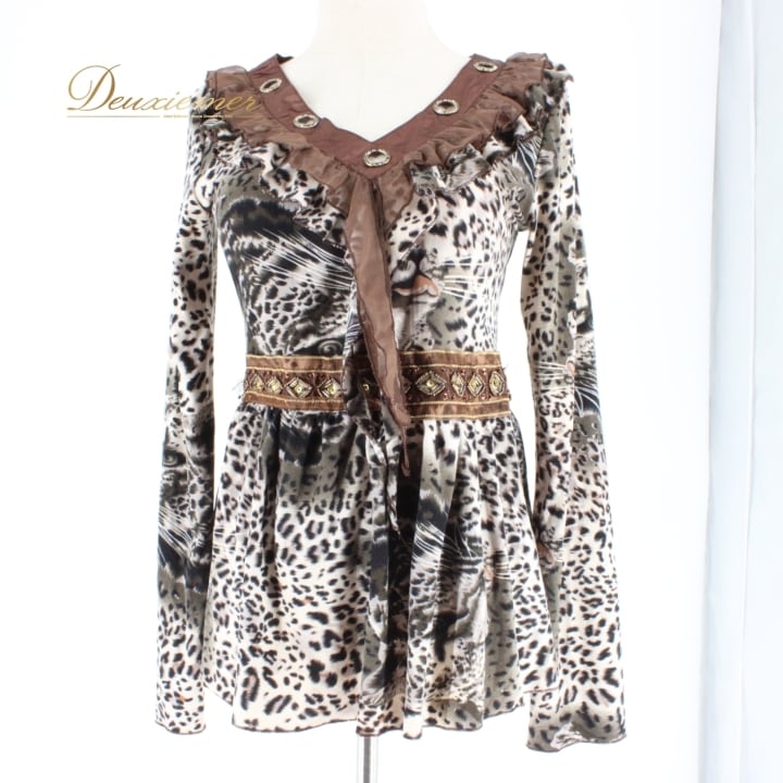 社交ダンス 衣装 スタンダード トップス レッスンウェア ICHIOKU イチオク ホワイト系 ブラウン系 ブラック系 黒 白 茶色 ヒョウ柄 ビジュー ショート丈 袖付き 柄物 フレア デザイン 個性的 コーディネート ダンス用服 ティーシャツ カジュアル 普段着 おしゃれ ファッション 柔らかい お呼ばれ 体型カバー トレーニング ウェア 女性用 ストレッチ
