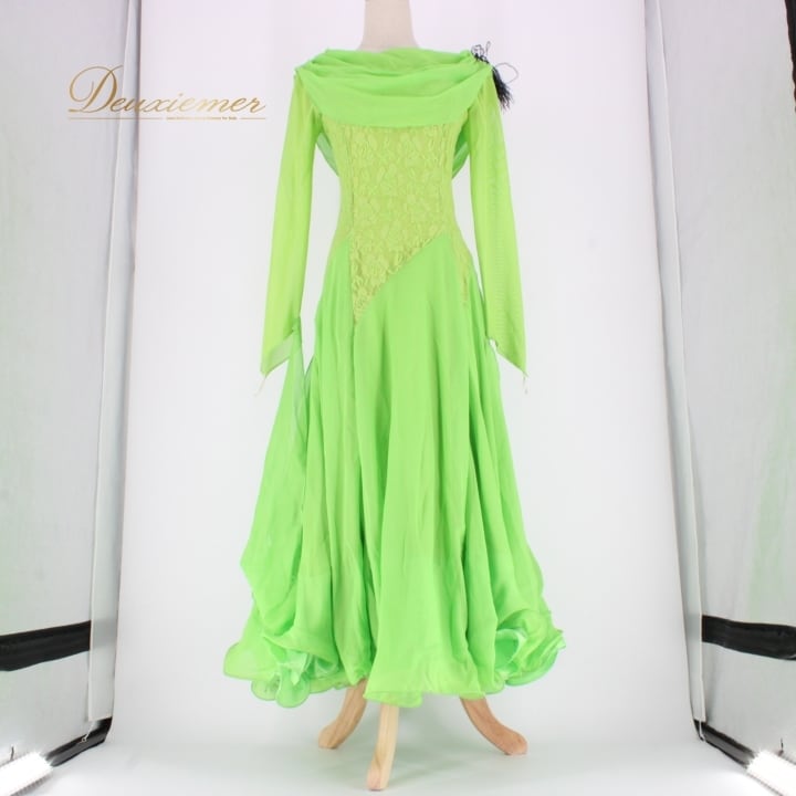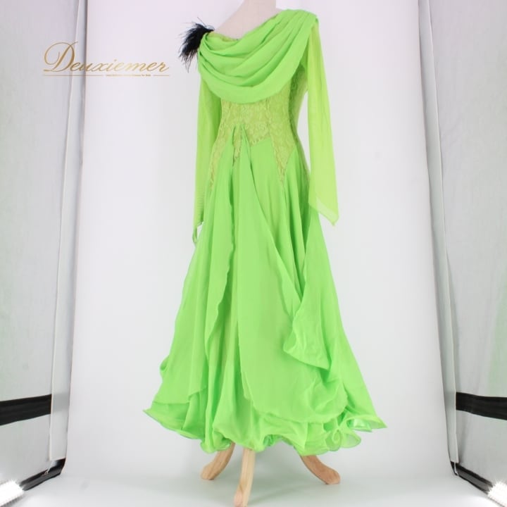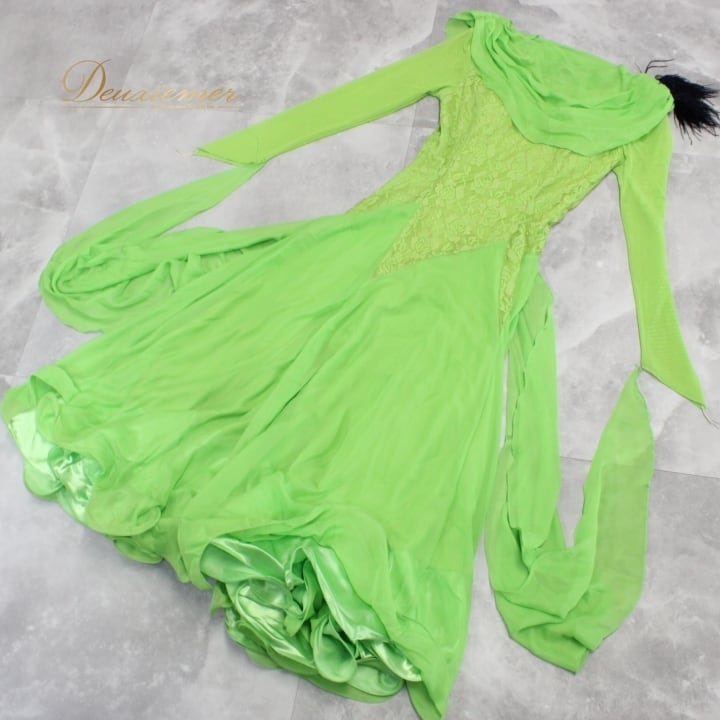 社交ダンス 衣装 スタンダード ドレス ワンピース パーティドレス prima boutique プリマブティック 黄緑 レース 花柄 フロート グリーン系 鮮やか 柔らかい 軽やか シルエット フレッシュ フロール デザイン ドレスアップ 着心地 ステージ衣装 パフォーマンス 結婚式 二次会 発表会 ダンス衣装 おしゃれ レディース スタイリッシュ 輝く