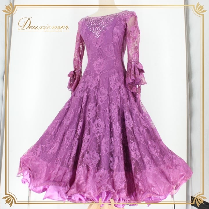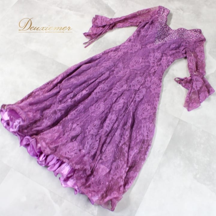 #社交ダンス #ダンスドレス #女性用ドレス #ファッション #レースドレス #パープルドレス #衣装 #花柄 #ダンス衣装 #シルエット #舞台衣装 #パーティー #スタイル #コスチューム #ミステリアス #トルソー #伸縮性 #ファスナー #お洒落 #ENUTSU