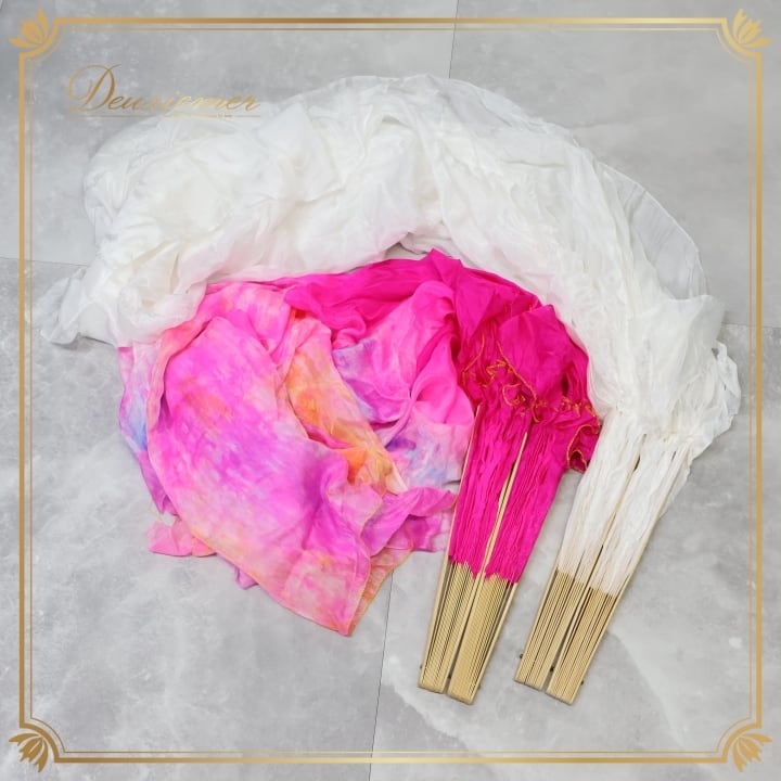ベリーダンス 小物 まとめ売り 全2点 セット ファンベール 鮮やか 白 青 紫 黄 タイダイ柄 カラフル ダンス ステージ 練習 レッスン 小道具 民族舞踏 ホワイト系 イエロー系 ブルー系 ピンク系 パープル系