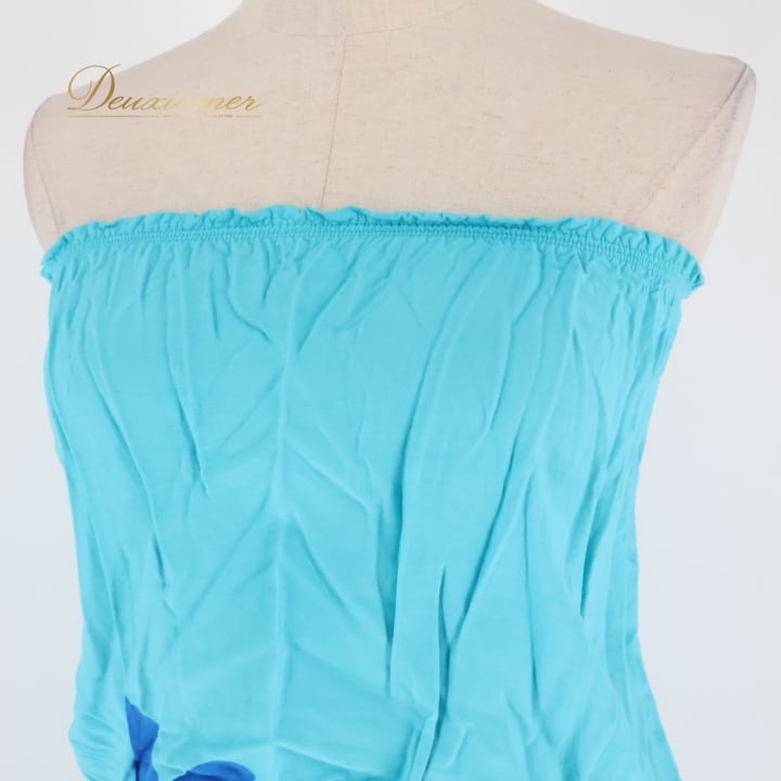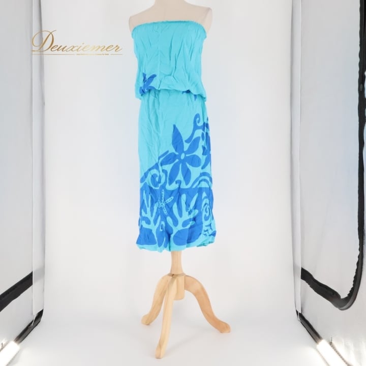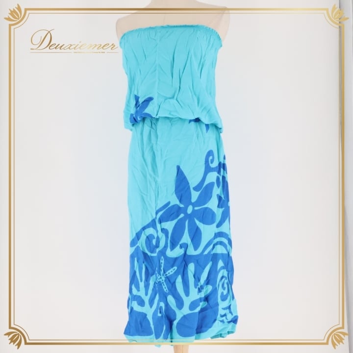 フラダンス 衣装 ワンピース ドレス ハレクアイレア ブルー系 Halekuai Lea 日本製 チューブトップ ワントーン ティアレ柄 かわいい 華やか 鮮やか 明るい 水色 青 ハワイアン アロハ ハワイアンプリント フラ ダンス レッスン 練習 軽やか