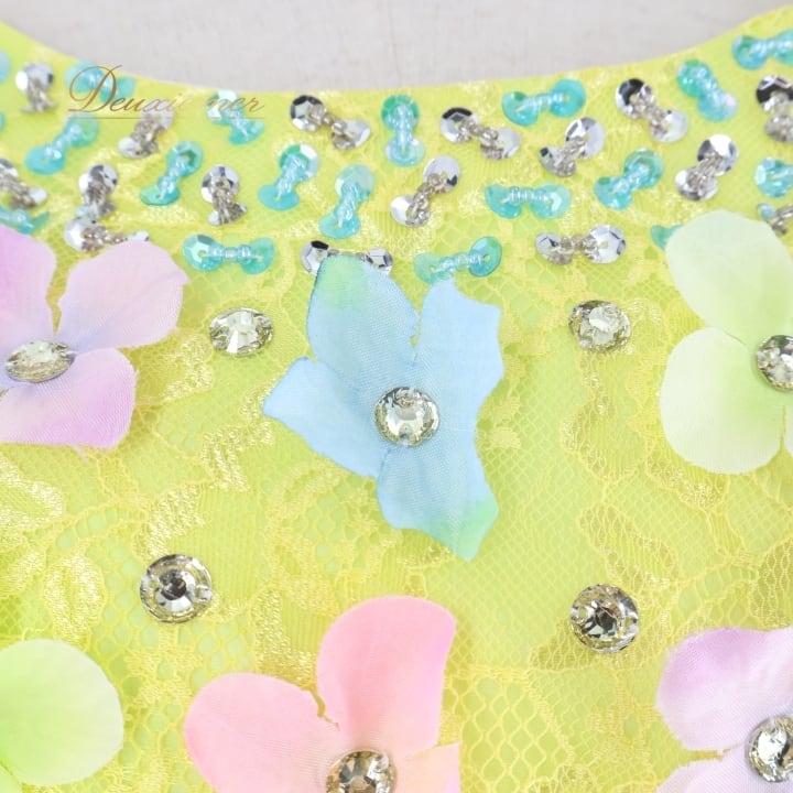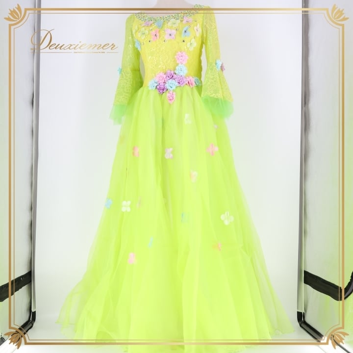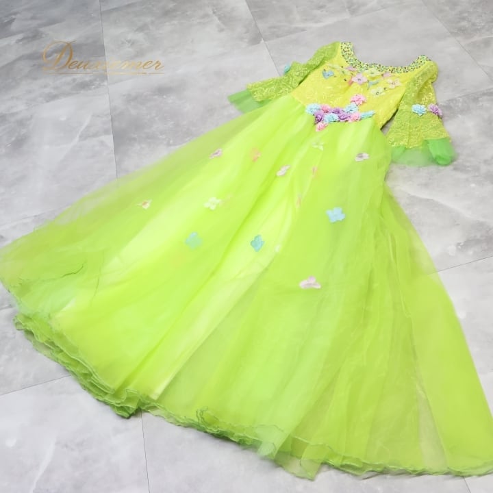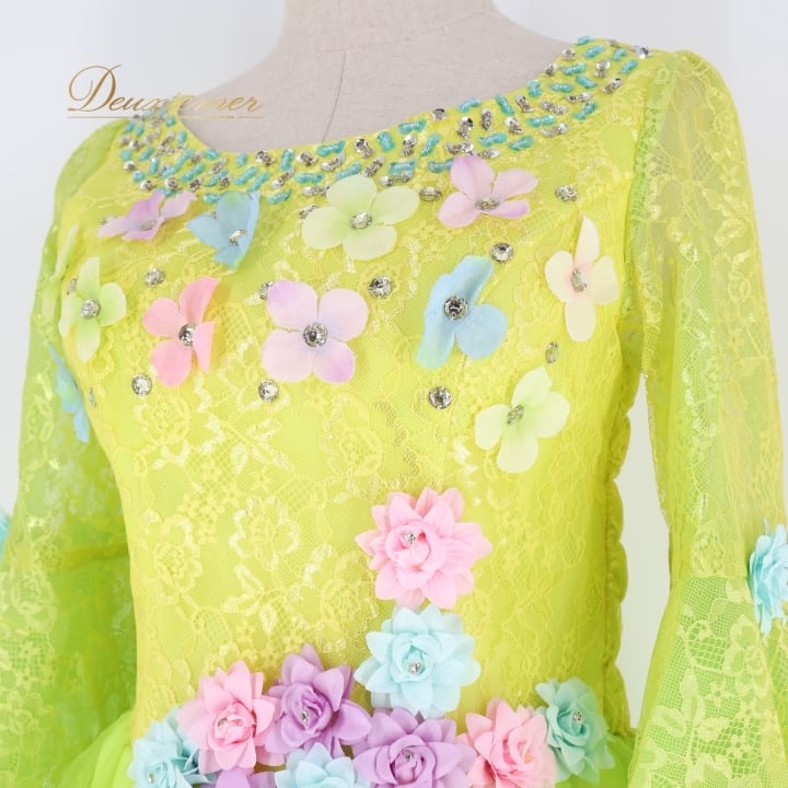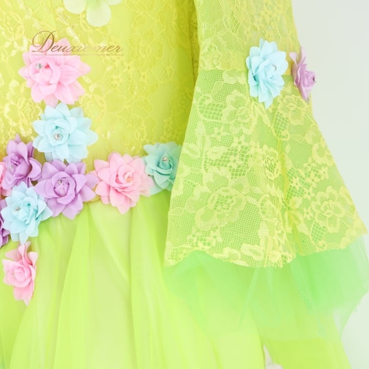 パーティドレス ワンピース ドレス グリーン系 イエロー系 ドニャヴィストーサ Da Vistosa 黄緑 黄色 花柄 レース 発表会 演奏会 パーティ ダンス ロングドレス 大人用ドレス カラフル パーティー用 コスチューム
