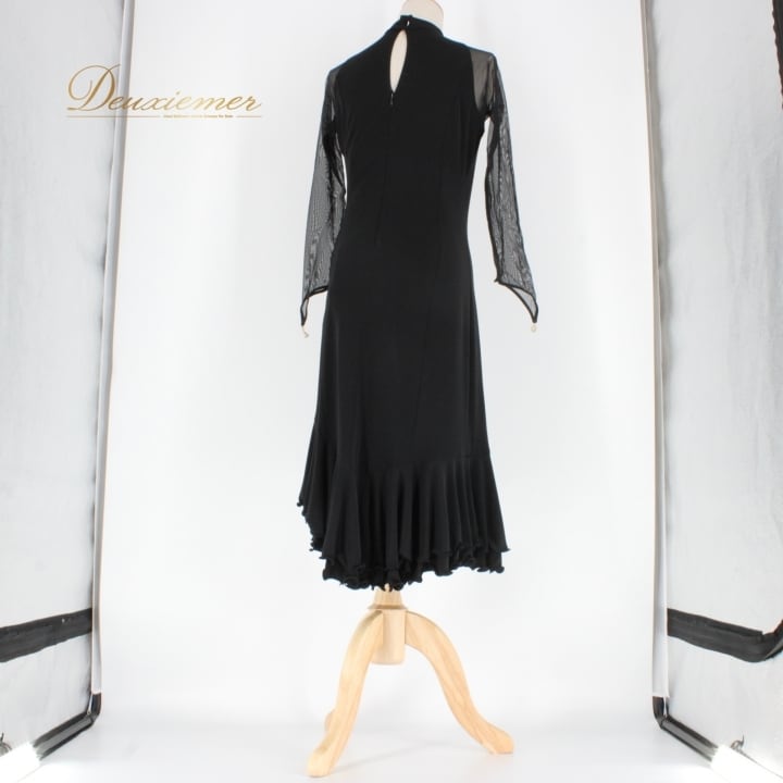 社交ダンス 衣装 スタンダード ドレス ワンピース パーティドレス SEKINE セキネ 長袖 ブラック系 黒 レース フォーマル 上品 シンプル 上品なデザイン 動きやすい 伸縮性あり 日本製 おしゃれ きれいめ 大人向け パーティー用ダンス服 エレガント 女性用 冬服 春服 夏服 秋服 軽量 コスチューム ステージ衣装 フィット感 包容力 アンダーウェア不要 クラシックスタイル シンプルデザイン