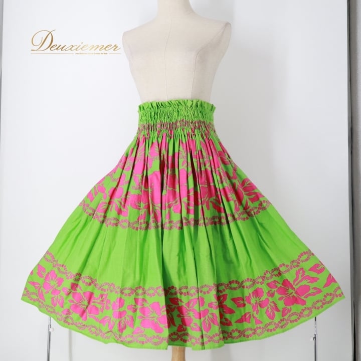 フラダンス 衣装 パウスカート グリーン系 ハイビスカス柄 ハワイアンプリント アロハ フラ ダンス レッスン 練習 華やか 鮮やか かわいい おしゃれ シングル スカート フレア ふんわり 軽やか ピンク系 ピンク 黄緑 フラダンス衣装 アロハシャツ 練習着 ハイビスカス柄スカート カジュアル スカートファッション お洒落