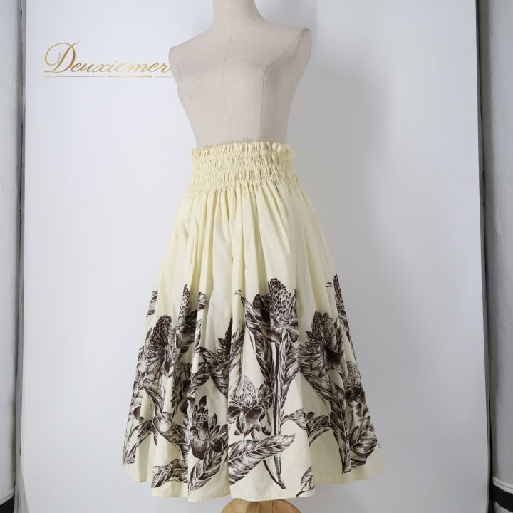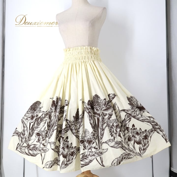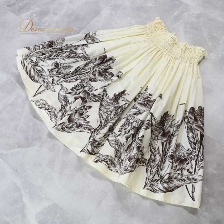 #フラダンス #パウスカート #ハワイアン #フラダンス衣装 #ホワイトブラウン #アロハ #ハワイ #ダンス衣装 #ウエストゴム #おしゃれ #ハワイアンプリント #女性用トルソー #コーディネート #レッスン用 #イベント衣装 #お揃い #ダンス #フラ #トロピカル #ENUTSU