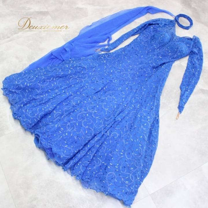 #社交ダンス #ダンス衣装 #ドレス #ロイヤルブルー #二重スカート #フロート #ダンスファッション #パーティードレス #女性用トルソー #おしゃれ #ダンススタイル #ダンスウェア #衣装 #舞踏会 #ステージ衣装 #優雅 #スウィング #動きやすい #ファッション #ENUTSU