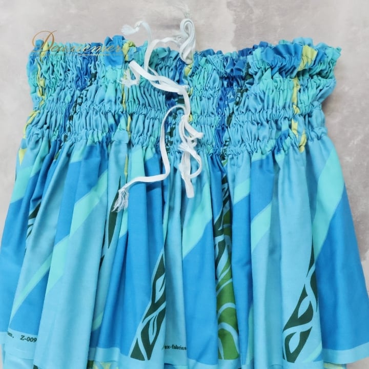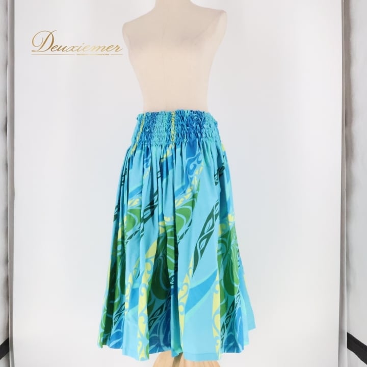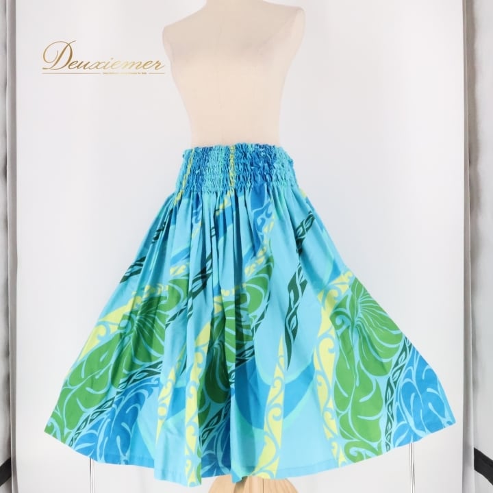 #フラダンス #フラダンス衣装 #パウスカート #ハワイアンファッション #ダンス衣装 #ウエストゴム #かわいいデザイン #ブルー #グリーン #イエロー #爽やかカラー #女性トルソー #ダンススタイル #トロピカル #ビーチファッション #ウエスト伸縮 #リゾートスタイル #夏コーデ #フラダンスレッスン #ハワイアンスタイル #ENUTSU
