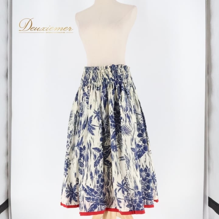 #フラダンス #パウスカート #フラダンス衣装 #ブルー #ホワイト #レッド #大人デザイン #トルソー #ウエストゴム #エクササイズ #レッスン #夏ファッション #ダンス衣装 #パフォーマンス #ステージ衣装 #ビーチスタイル #ハワイアン #ウエスト伸縮性 #ダンススタジオ #ENUTSU