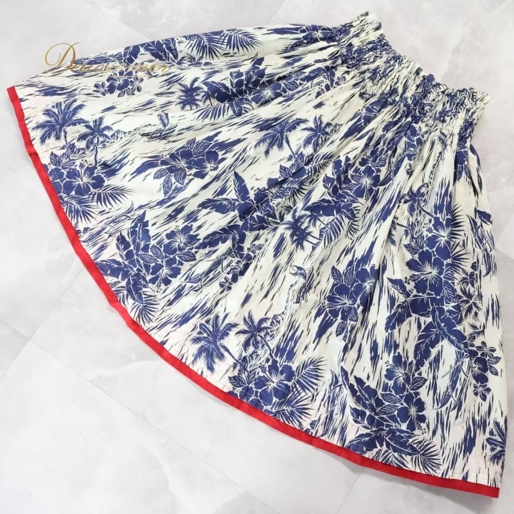 フラダンス 衣装 パウスカート ブルー系 ハイビスカス柄 プルメリア柄 ヤシの木柄 ヨット柄 シングル シンプル かわいい 華やか 鮮やか 明るい 青 白 赤 ハワイアン アロハ ハワイアンプリント フラ ダンス レッスン 練習 ビーチ おしゃれ レディース