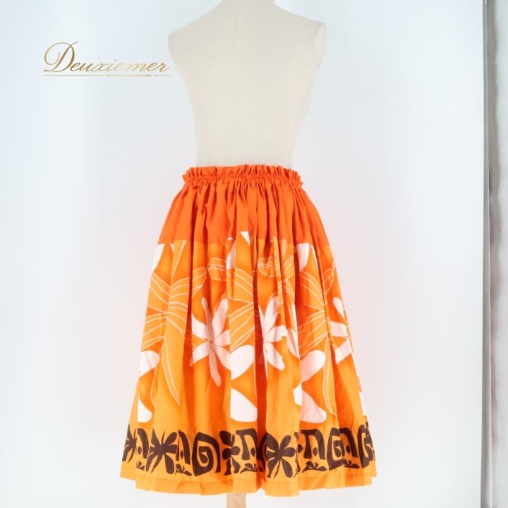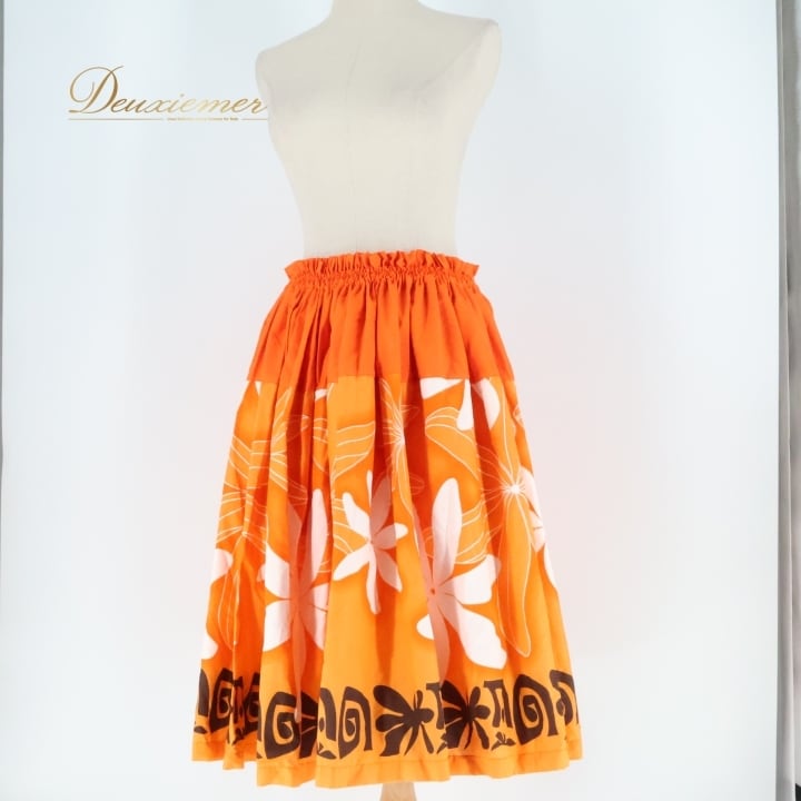 #フラダンス #パウスカート #スカート #オレンジ #花柄 #ホワイト #華やか #ダンス衣装 #フラダンス衣装 #ウエストゴム #カラフル #女性用 #トルソー #舞台衣装 #おしゃれ #ビーチ #夏 #ダンススタジオ #イベント #ENUTSU