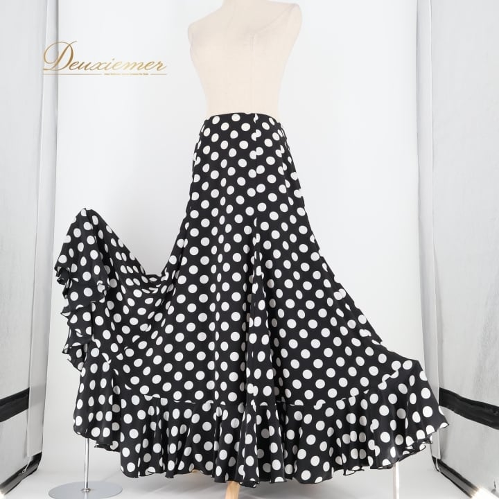 フラメンコ 衣装 ソニアジョーンズ SONIA JOHNES ファルダ スカート ペチコート ブラック系 ホワイト系 黒 白 水玉 ドット ボランテ フリル レース ダンス パーティ 発表会レディース フェミニン 衣装用 コスチューム おしゃれ ダンス衣装 発表会用