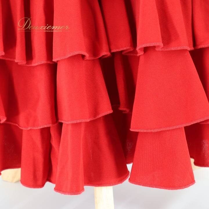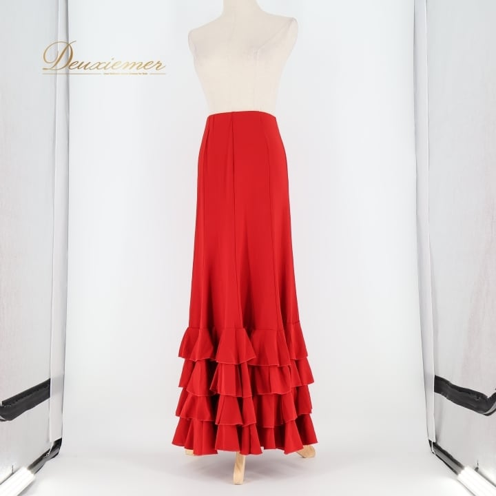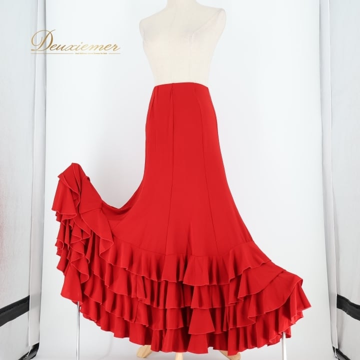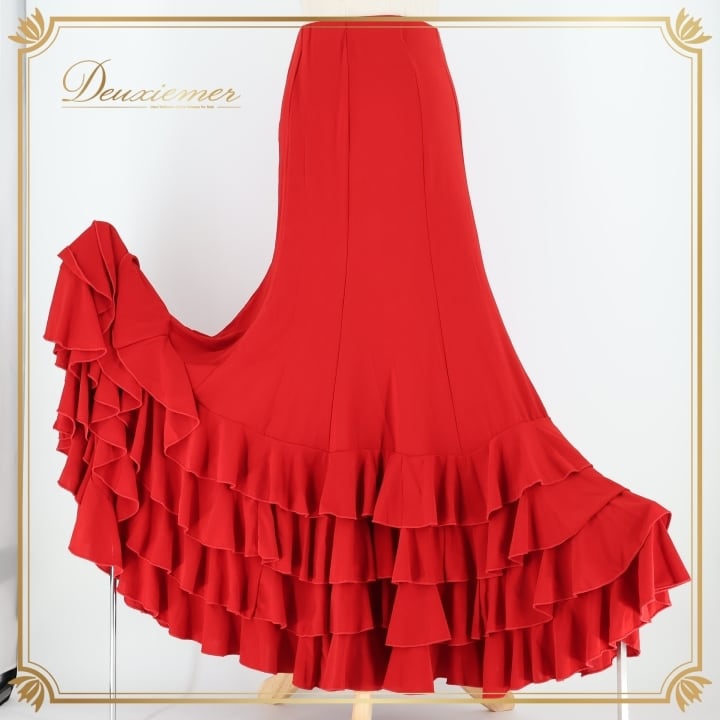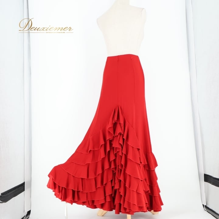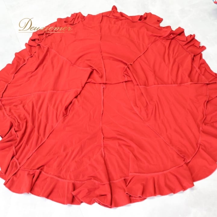 フラメンコ 衣装 ファルダ スカート レッド系 イチオク ICHIOKU 赤 無地 ボランテ フリル 練習着 レッスン 発表会 パーティ ストレッチ 伸縮 フリルスカート フラメンコスカート ダンス衣装 おしゃれ 赤色 練習用 ステージ衣装