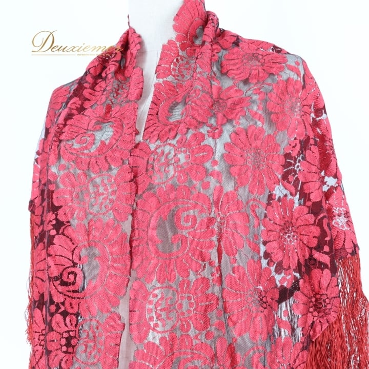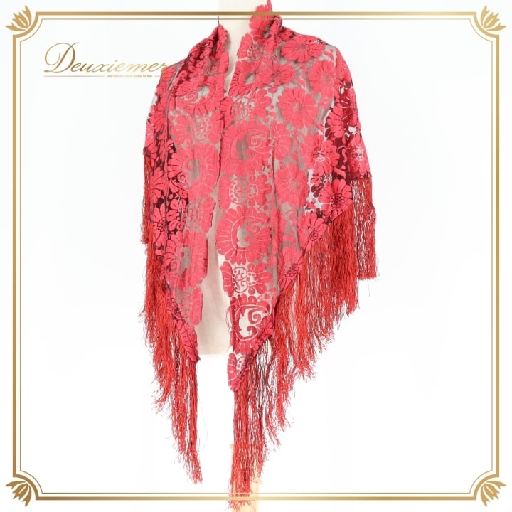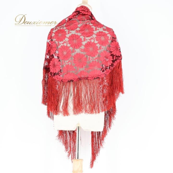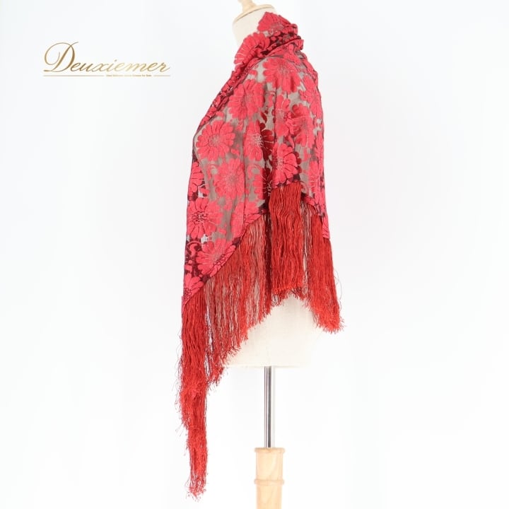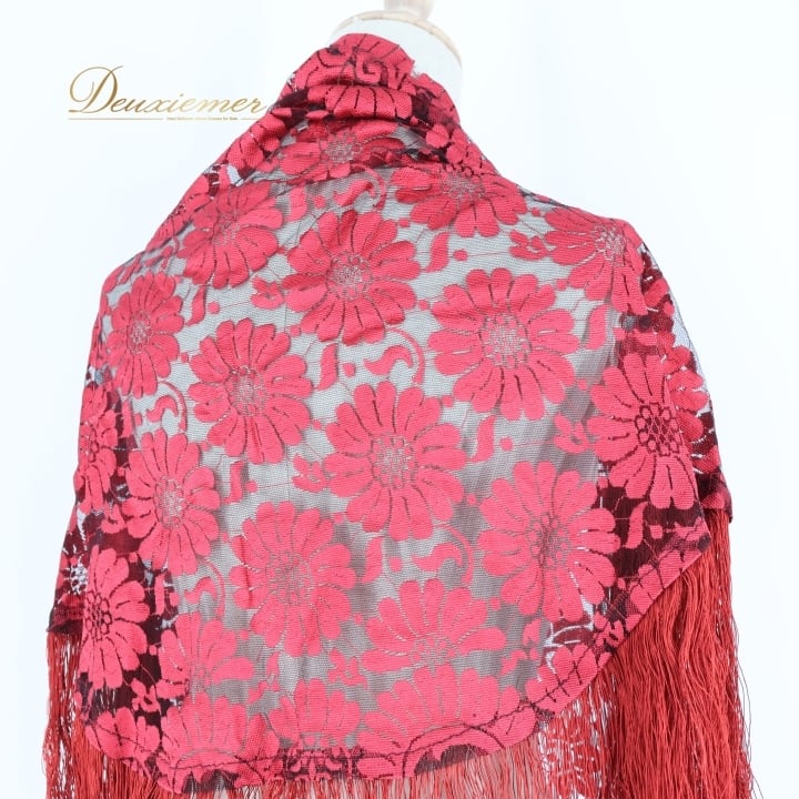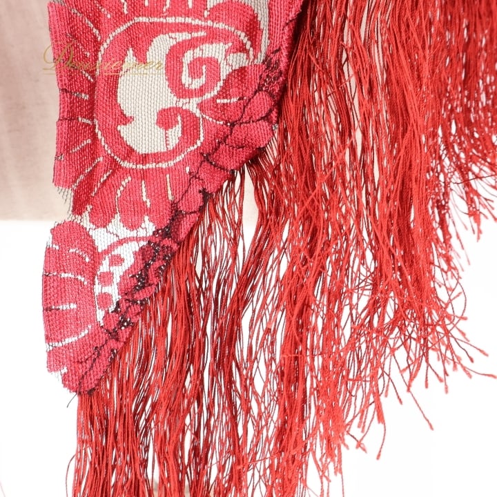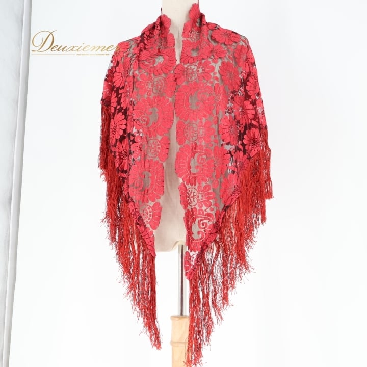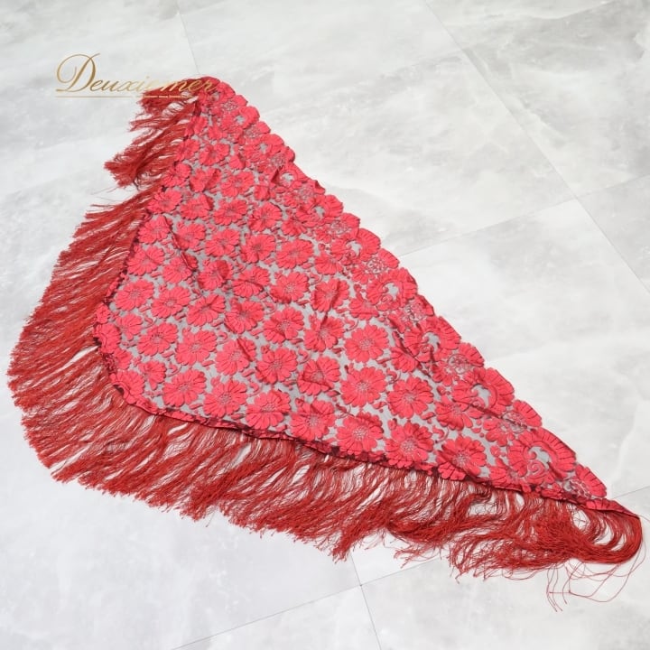 フラメンコ 衣装 シージョ ピキージョ レッド系 赤 レース フレコ フリンジ 透け感 ダンス パーティ 装飾 飾り トライアル 三角形 フラメンコ衣装 シージョピキージョ 赤色 フリンジ付き ダンスパフォーマンス パーティ用 コスチューム
