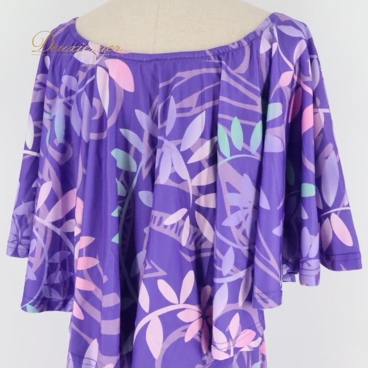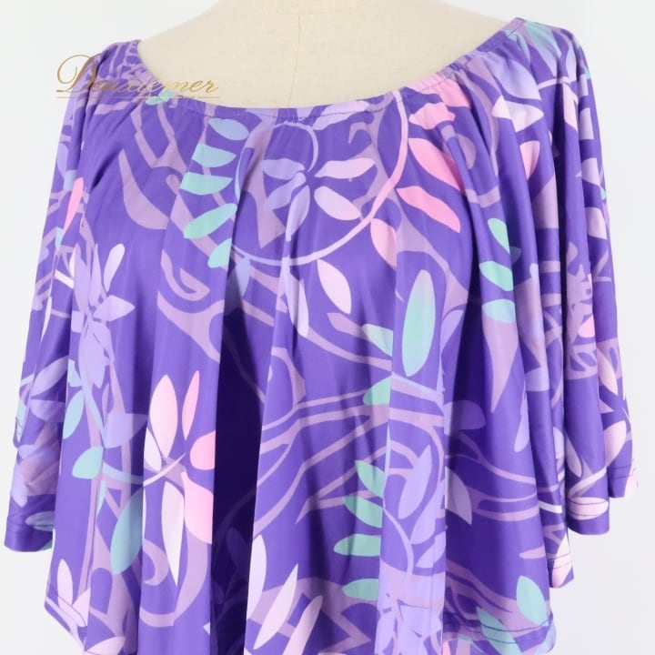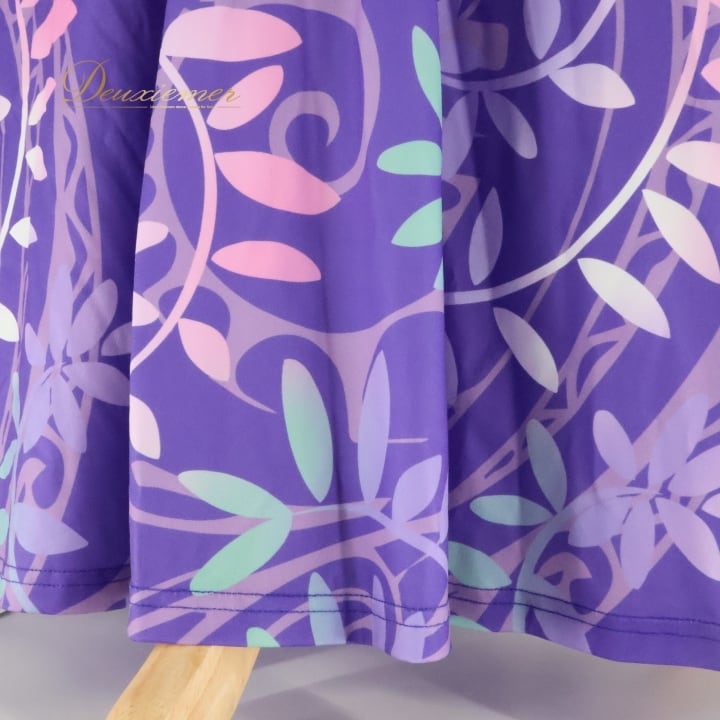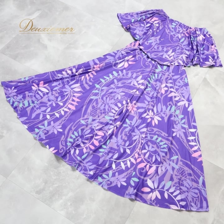 フラダンス 衣装 ワンピース ドレス マハロ パープル系 Mahalo かわいい 華やか 鮮やか 明るい ひらひら 上品 きれい さらさら 紫 ハワイアン アロハ ハワイアンプリント フラ ダンス レッスン 練習 おしゃれ イベント カジュアル マキシドレス