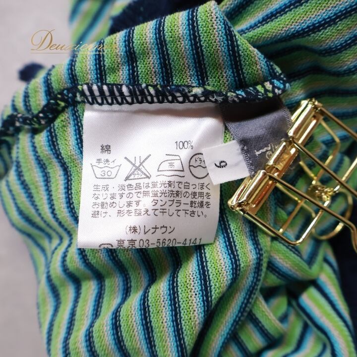 #TOKUKO #トップス #ファッション #日本製 #ボーダー柄 #カジュアル #綿100 #伸縮性 #グリーン #ネイビー #女性用 #トルソー #サイズ9 #トクコプルミエヴォル #スタイル #おしゃれ #日常着 #普段着 #可愛い #ENUTSU