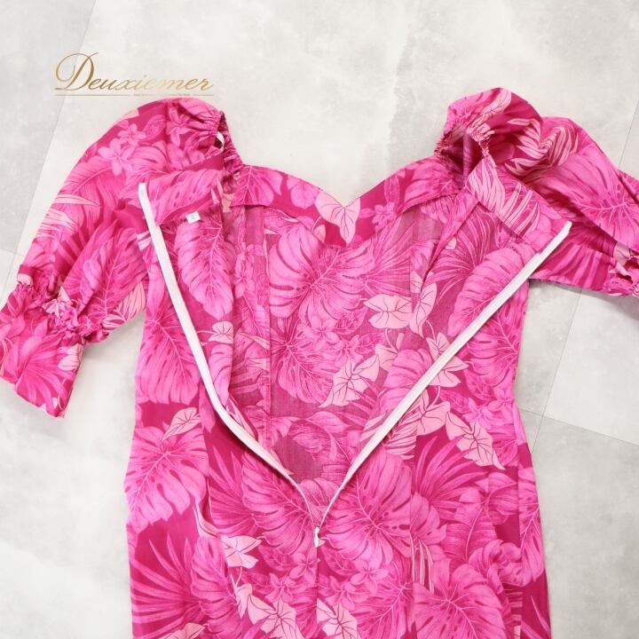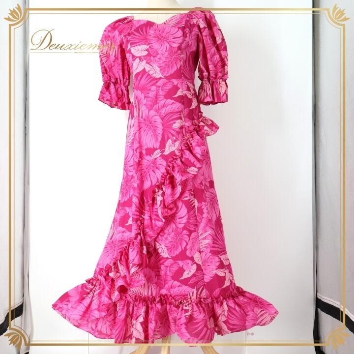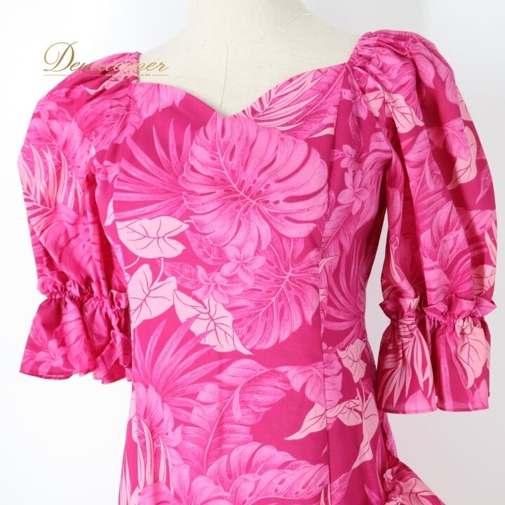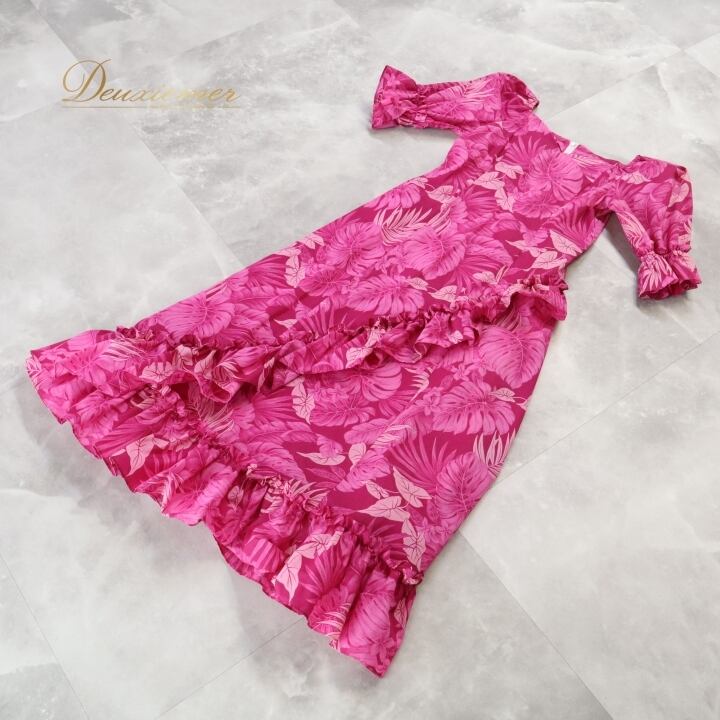 #フラダンス #フラダンス衣装 #ドレス #ワンピース #日本製 #アロハエミカ #華やか #ピンク #かわいい #衣装 #レディースファッション #コスチューム #ファッション #トルソー #フリル #ポリエステル #綿混紡 #ダンス衣装 #夏祭り #ENUTSU