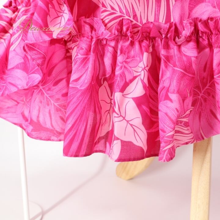 フラダンス 衣装 ワンピース ドレス ピンク系 アロハエミカ 日本製 Aloha Emika モンステラ柄 プルメリア柄 ハワイアンプリント アロハ フラ ダンス レッスン 練習 フリル 華やか 鮮やか かわいい おしゃれ 上品 明るい 大人 レッスン着 練習着 フラダンス衣装 アロハ ワンピース レディース ハワイ風 大人可愛い リゾート カジュアル レディースファッション エレガント スタイリッシュ